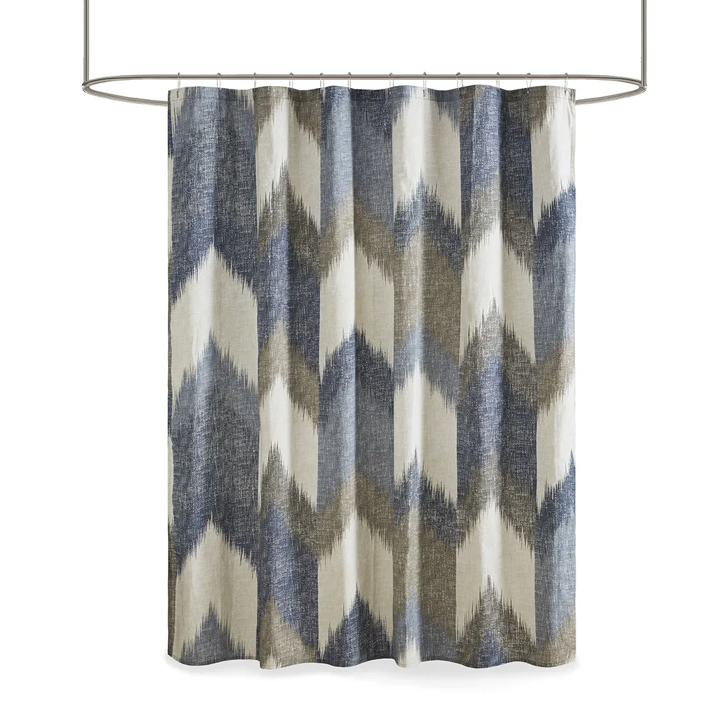 Spice up your space with the INK+IVY Alpine Collection. Printed on 200 thread count cotton, this broken chevron uses shades of blue and taupe to accentuate your space. Each shower curtain measure 72"x72" and is finished with 12 button holes at the top making it easy to hang; hooks, rod, and a water repellant liner are not included and will need to be purchased separately.