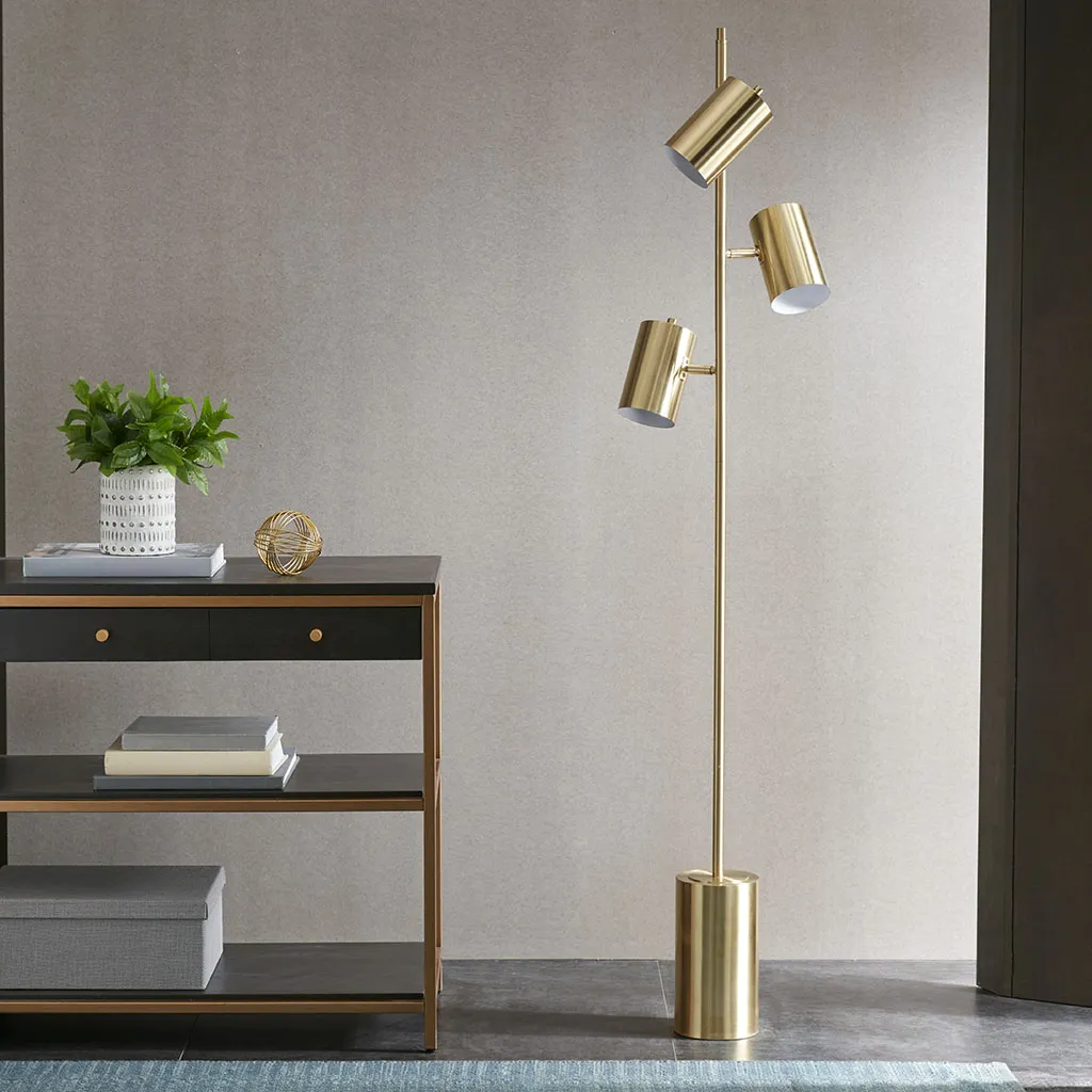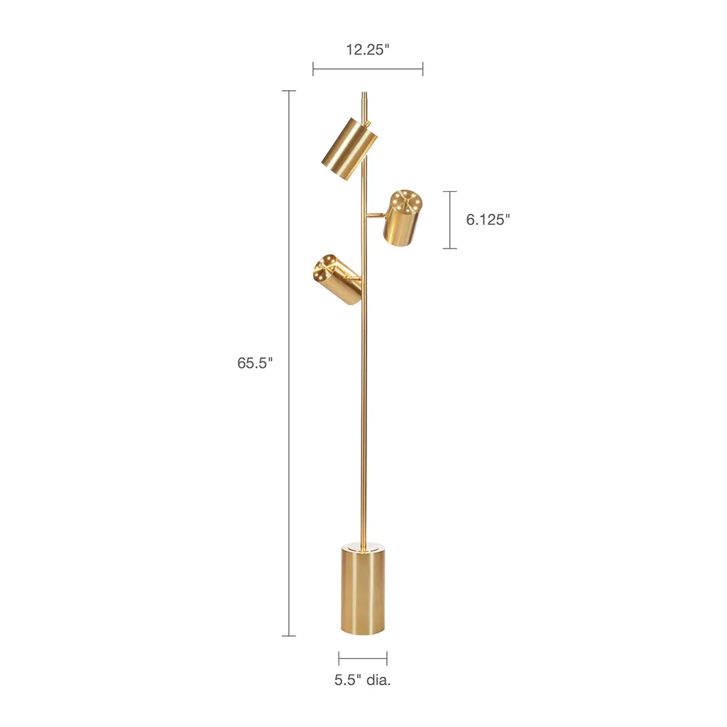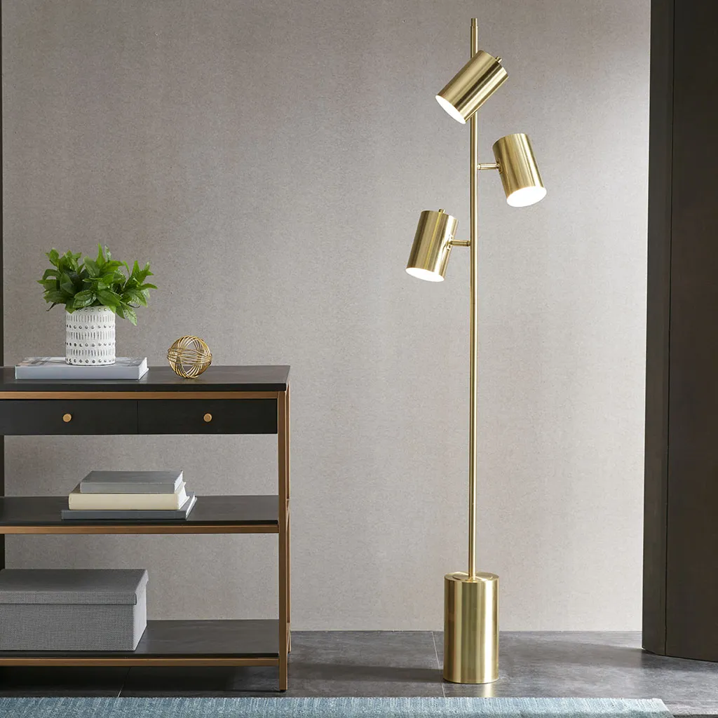 The Ink+Ivy Alta 3-Light Metal Floor Lamp provides a unique and stylish addition to your space. This metal pendant features a gold finish creating a striking look. This floor lamp adds an eye-catching look to your decor. Three Type A lightbulbs is needed(not included). Comes with a 2-year warranty.