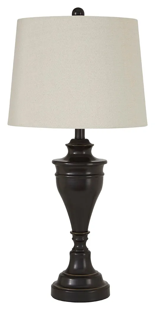 Delightfully turned pedestal base gives this table lamp a sense of easy elegance. Dark bronze-tone metal is a simply stylish counterpoint.