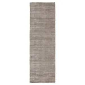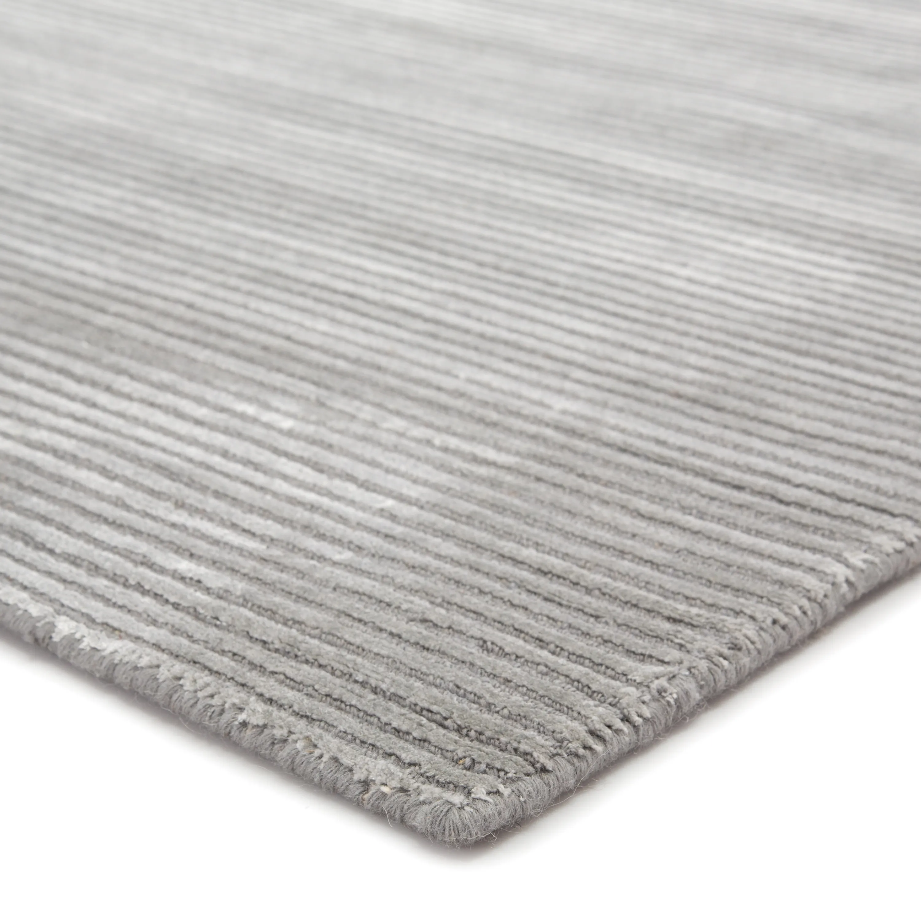 This sleek hand-loomed area rug boasts a lustrous tone-on-tone gray and silver colorway with texture-rich stripes creating a ridged high-low feel. In a soft combination of wool and viscose, this neutral accent lends versatile style to modern homes.