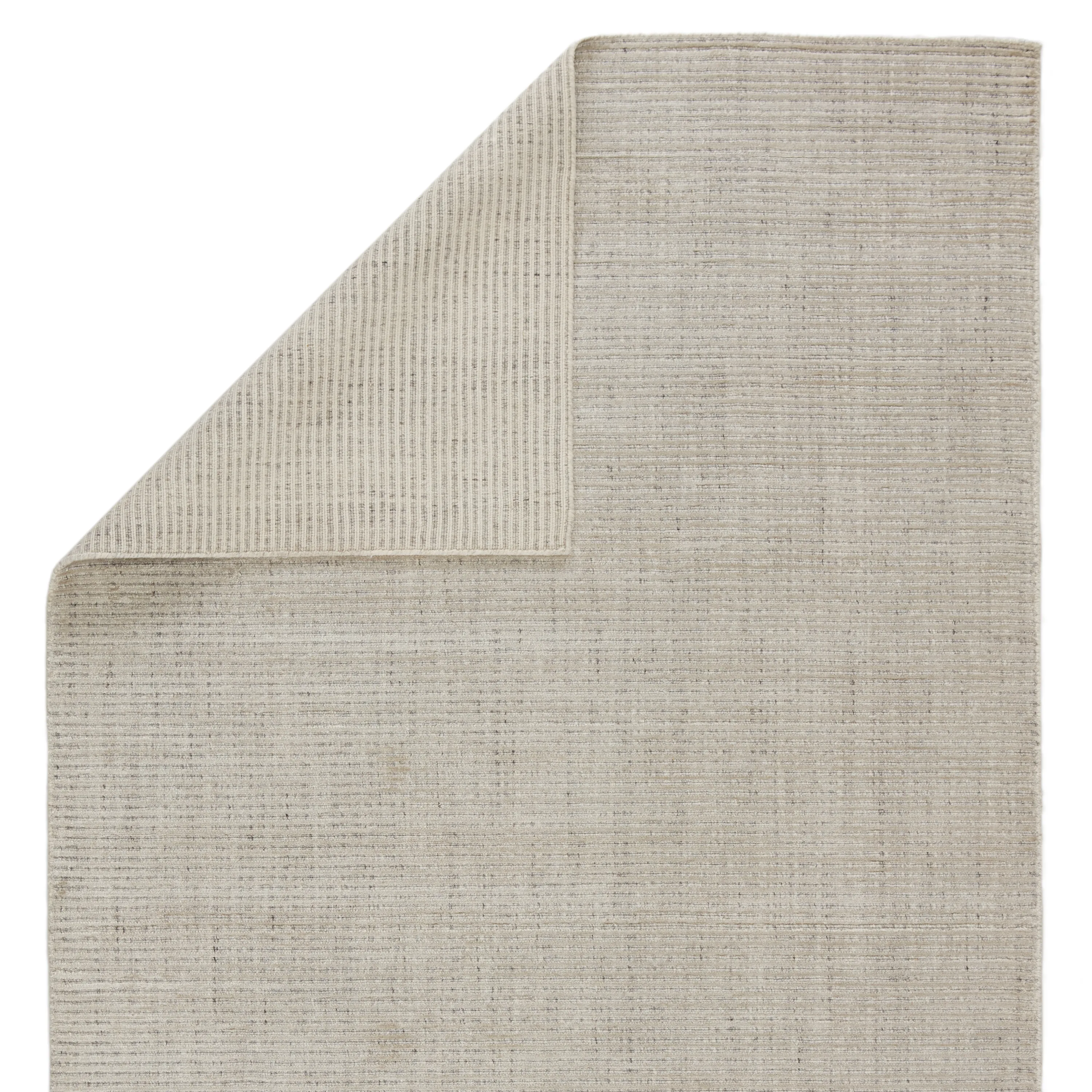 Sophisticated and handsomely modern, the Basis collection takes an elemental accent to a sleek new level. The ivory and dappled gray colorway of this hand-loomed double back rug makes for a versatile foundation in bedrooms and living spaces. Crafted of durable wool and soft, lustrous viscose, the cut and looped pile creates a subtle stripe design rich with texture.