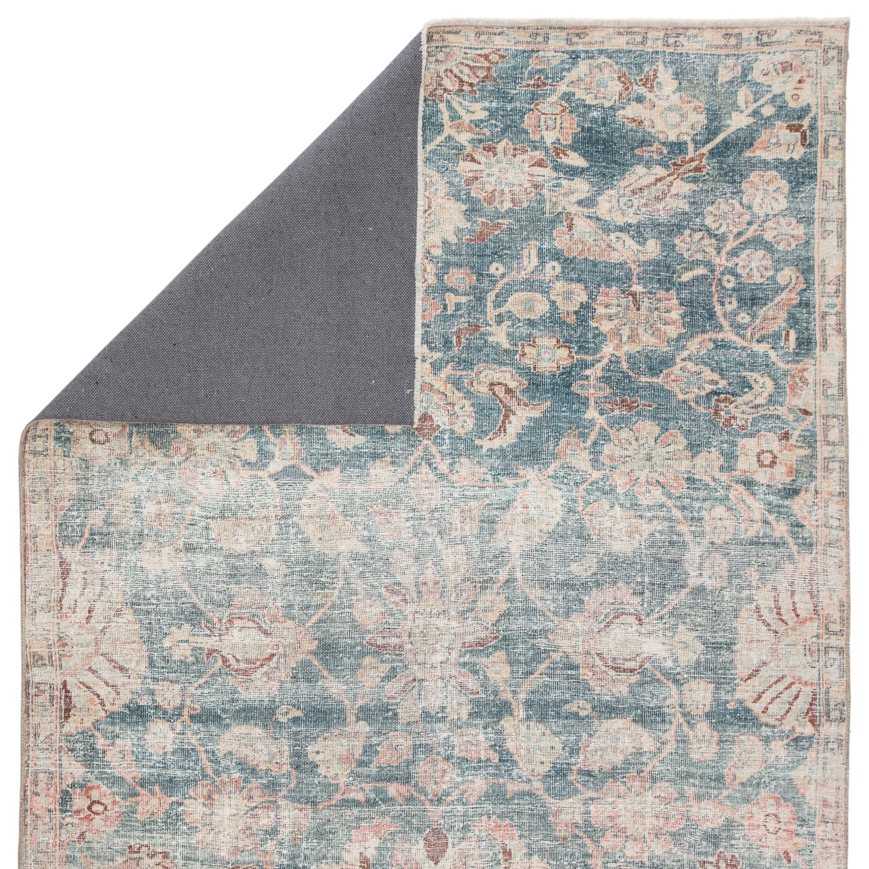 The Boheme collection brings vintage inspiration to life with ornate, worldly designs and a timeless distress effect. The Bardia area rug boasts an elegantly antiqued Oushak and meandering border design in stunning hues of deep teal and rosy rust. This zero-pile rug is made of cotton, polyester, and soft chenille for a flat, durable finish.