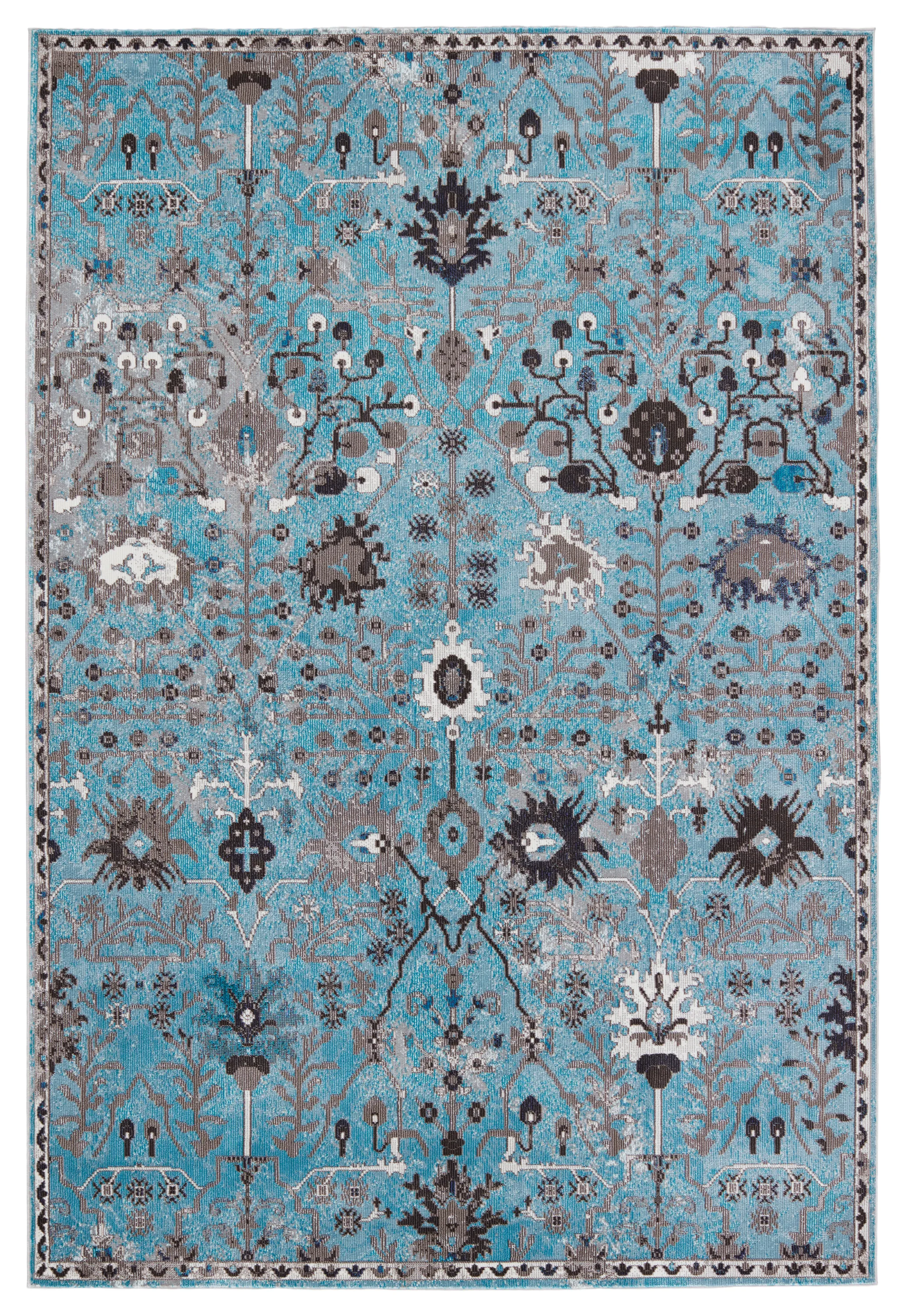 The Borealis is a stellar study in color, movement, and texture. The Zaniah rug melds traditional motifs with a cool-toned palette of light blue, gray, and white for a fresh, contemporary statement. Made of durable polypropylene, this vibrant power-loomed rug is easy-care and perfect for high-traffic rooms in the home.