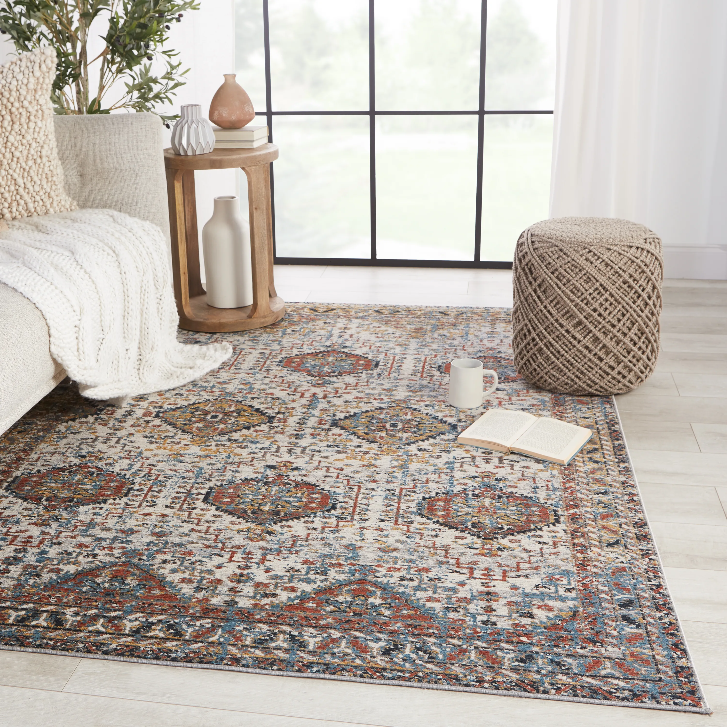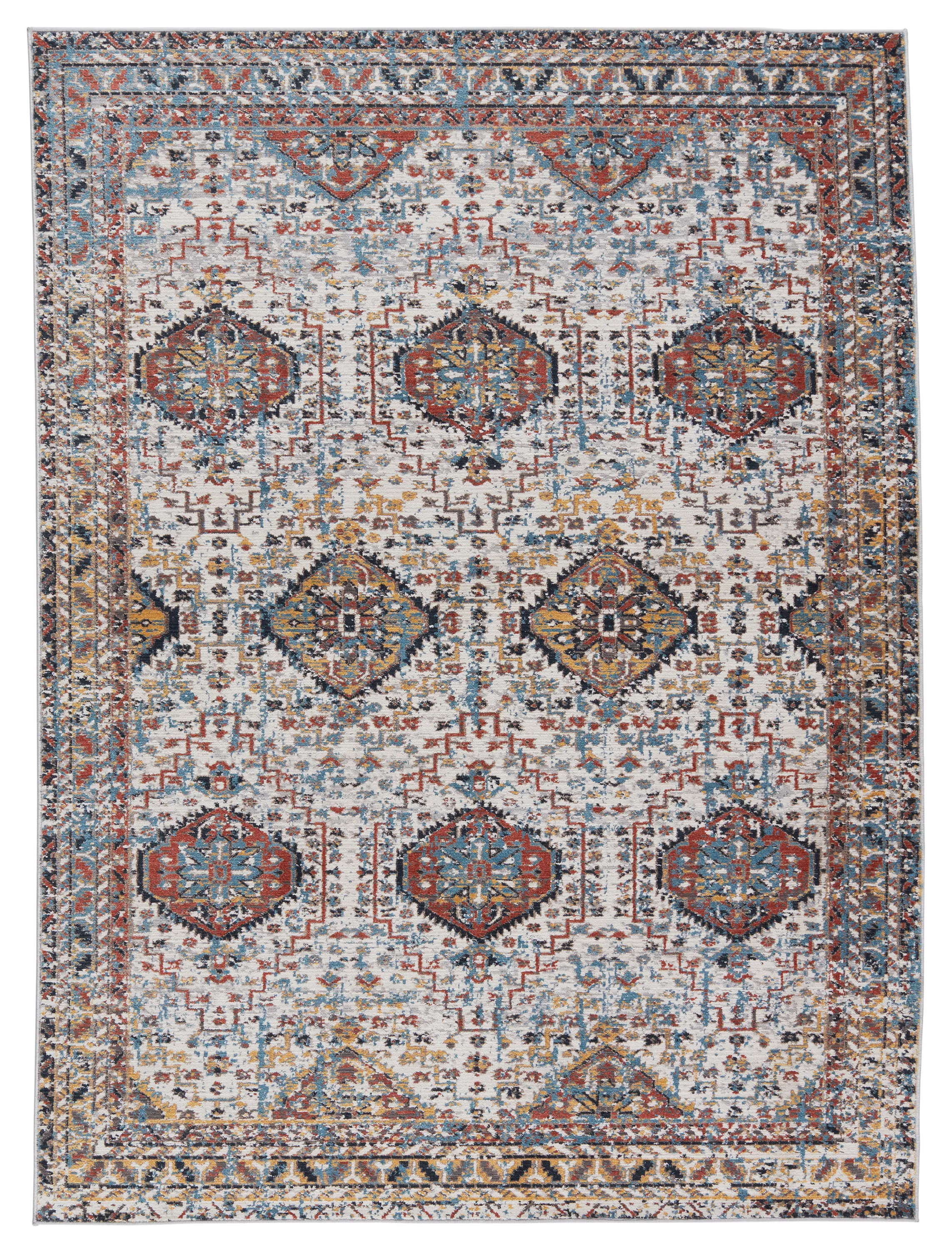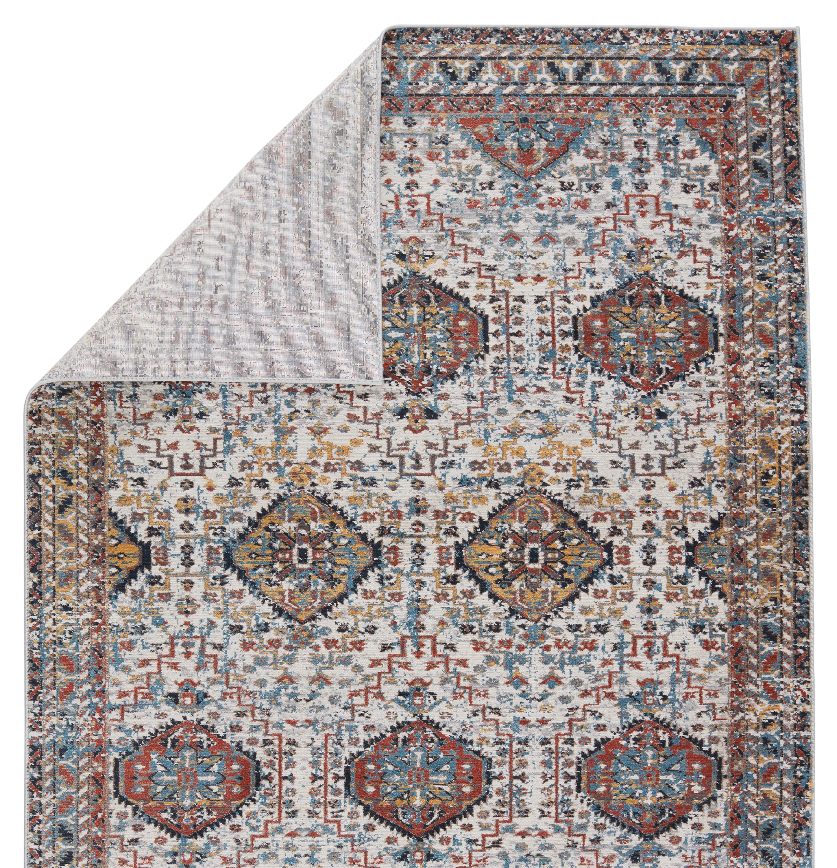 The Byzantine collection boasts a textural, high-end look at an accessible price. The Gordiana rug showcases a beautifully detailed repeat medallion motif in rich hues of blue, red, and yellow with hints of white and light gray throughout. This soft, durable, and easy-to-clean polyester rug is ideal for heavily trafficked rooms of the home.