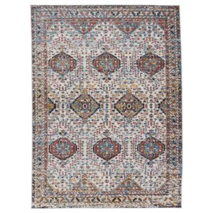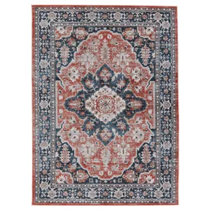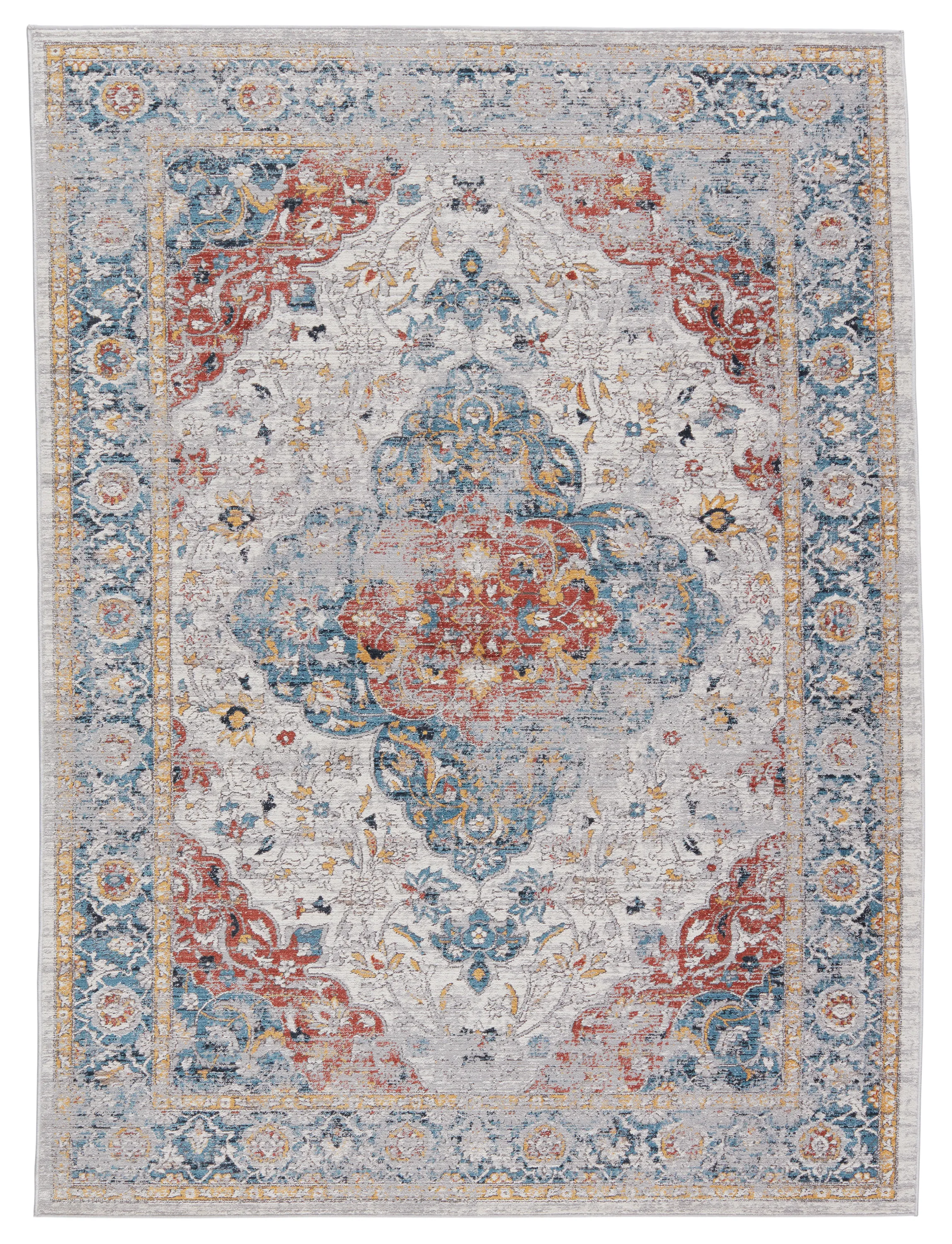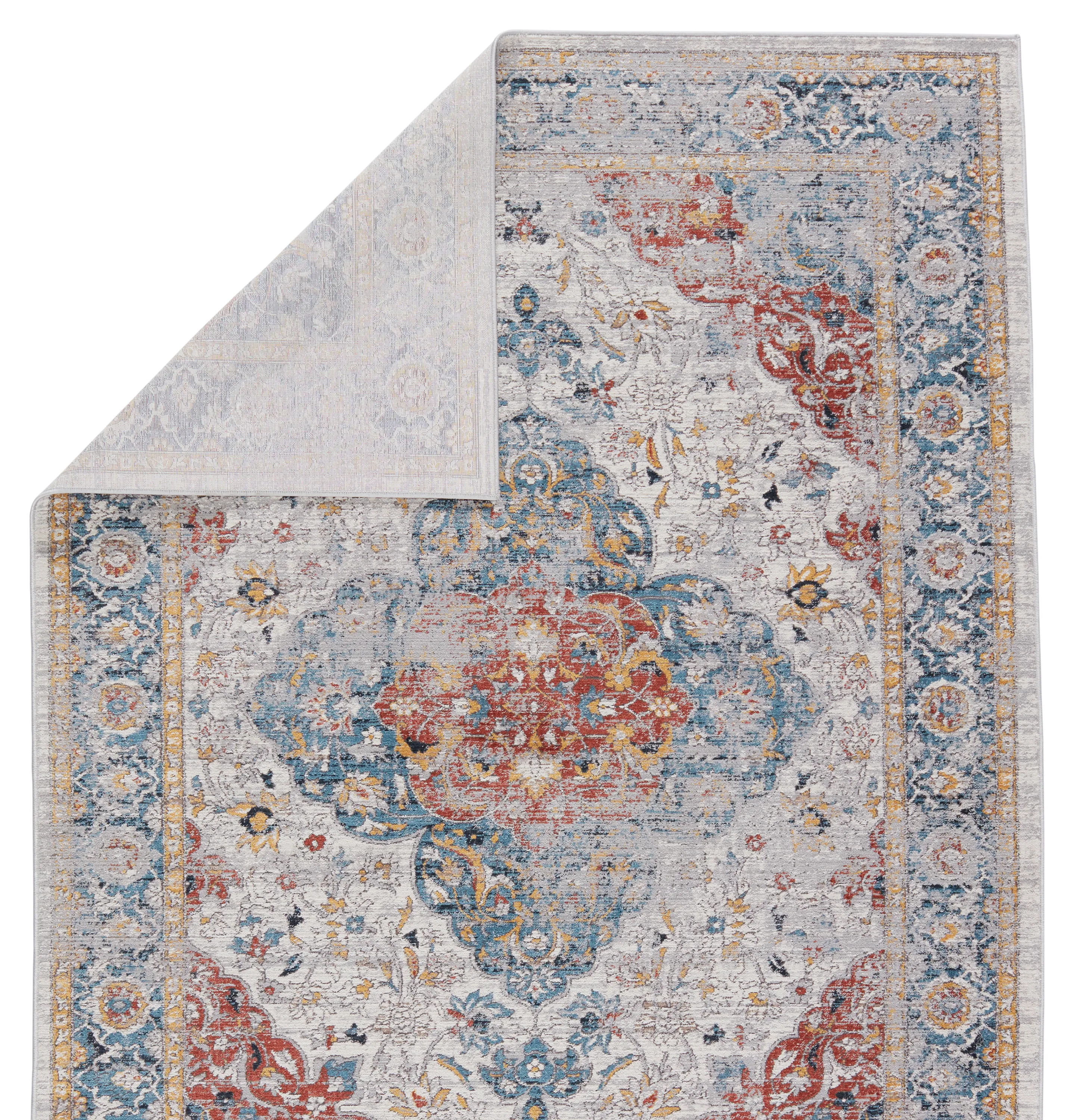 The Byzantine collection boasts a textural, high-end look at an accessible price. The Syagria rug showcases a romantically distressed center medallion in rich tones of red, yellow, and blue with hints of white and light gray throughout. This soft, durable, and easy-to-clean polyester rug is ideal for heavily trafficked rooms of the home.