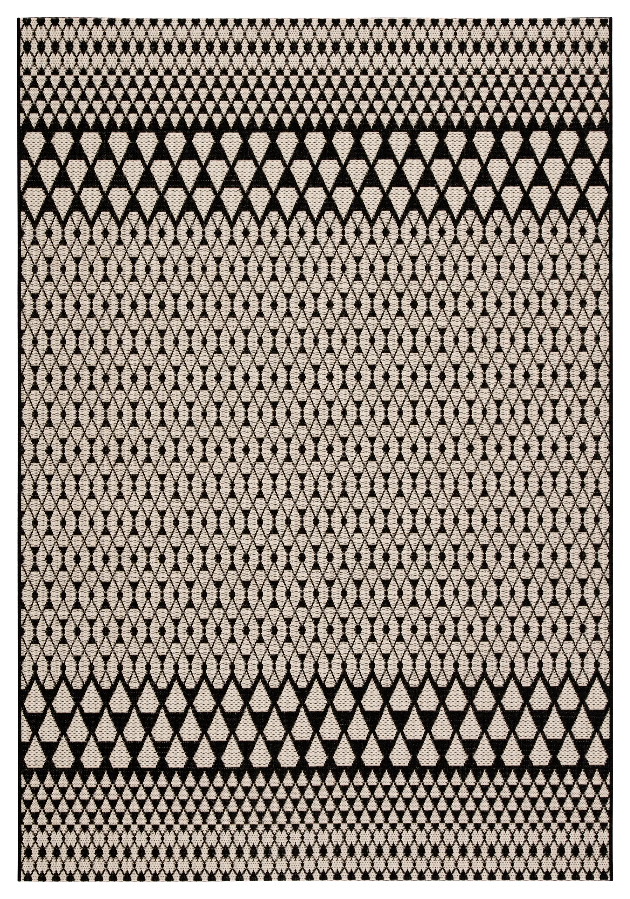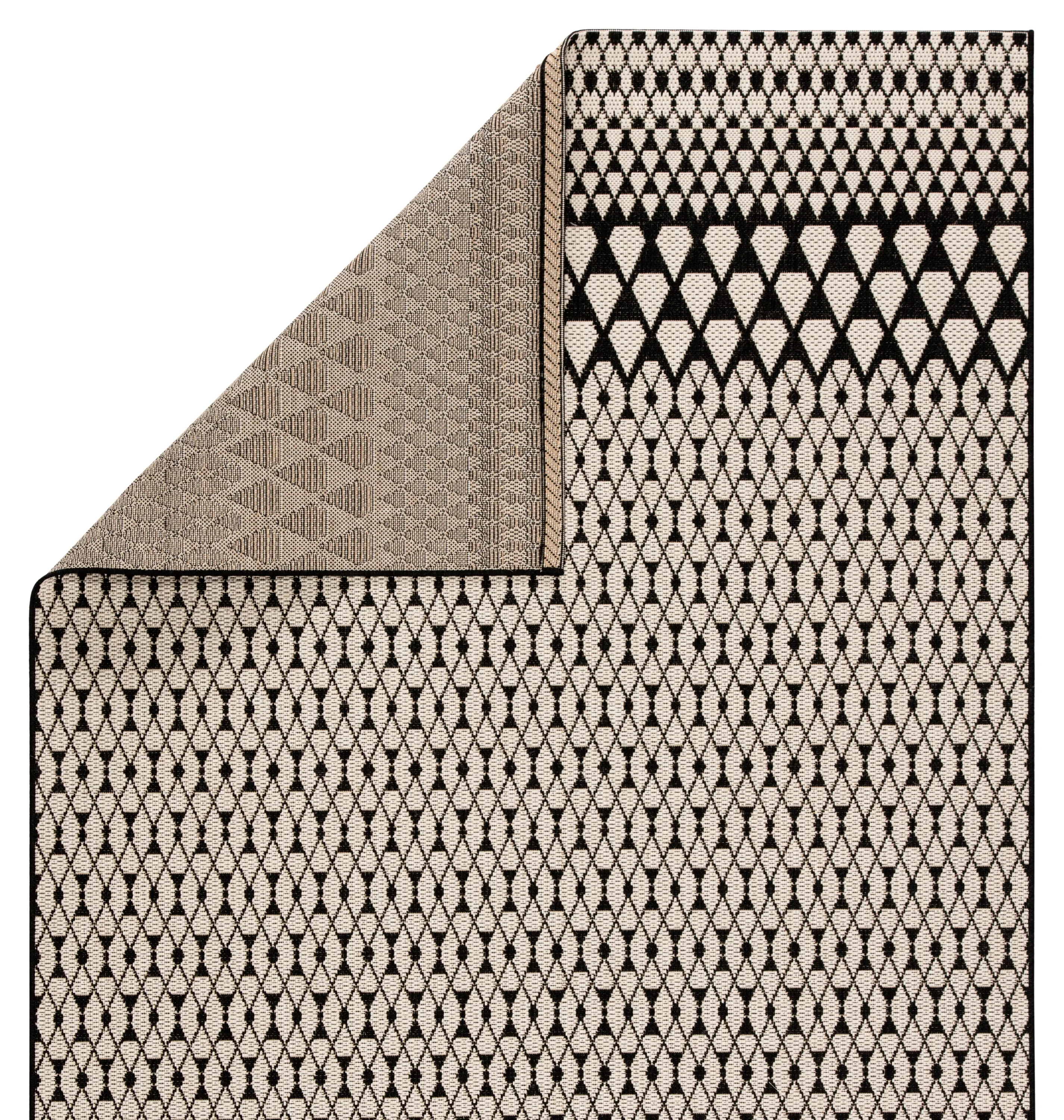 With an assortment of nautical and global designs, the Catamaran collection is the perfect weather-resistant and stylish accent for outdoor and indoor settings. The flat-woven Traveller rug features a sisal-inspired look and a dynamic lattice pattern. Ivory, natural beige, and black hues offer a classic color palette to any space.
