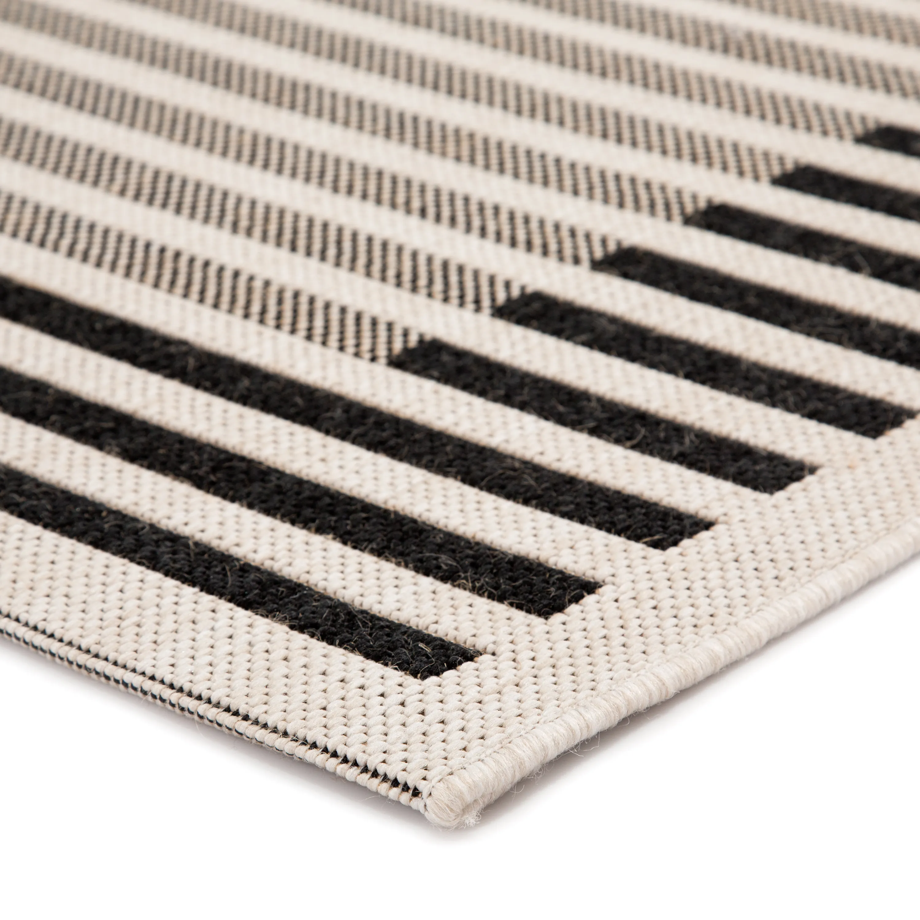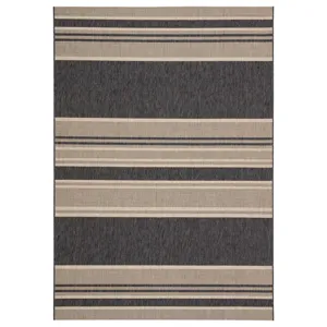 Catamaran Fathom Indoor/ Outdoor Stripe Ivory/ Black Area Rug (4'X5'7
