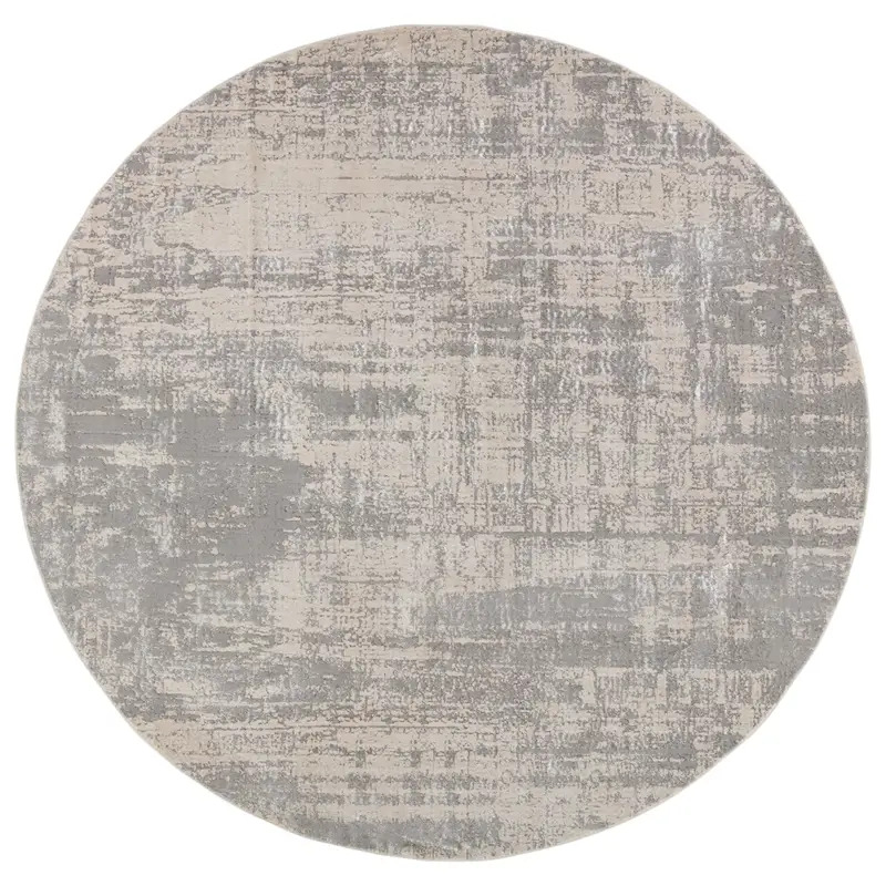 The show-stopping yet surprisingly versatile appeal of the Catalyst collection brings contemporary edge to any home. The neutral Calibra rug features a chic abstract design tones of ivory, gray, and silver. This power-loomed rug features metallic polyester fibers blended with stain-resistant polypropylene for a brilliant sheen from various perspectives.