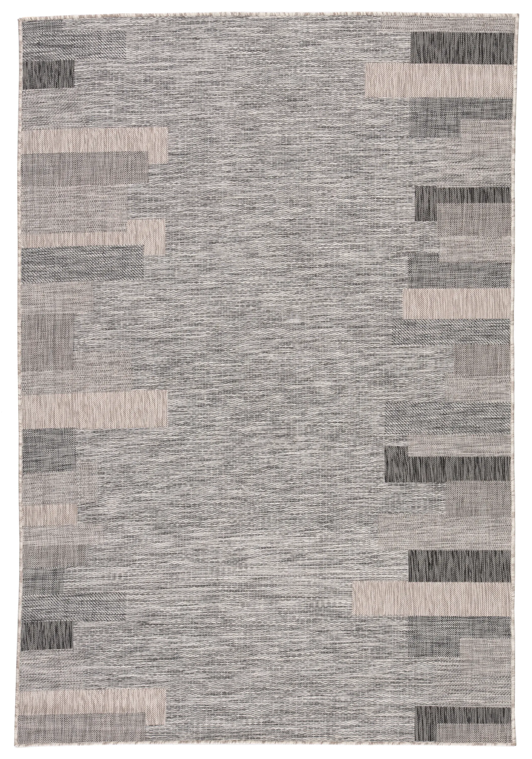 Bold and graphic, the Decora collection designed by Nikki Chu offers compelling geometric appeal to indoor and outdoor spaces. A sleek twist on a modern color-blocking scheme, the Nikea rug features a border of tonal gray rectangular shapes, overlapped with dimensional charm. This polyester accent is durable and weather-resistant, perfect for high-traffic areas and outdoor living.