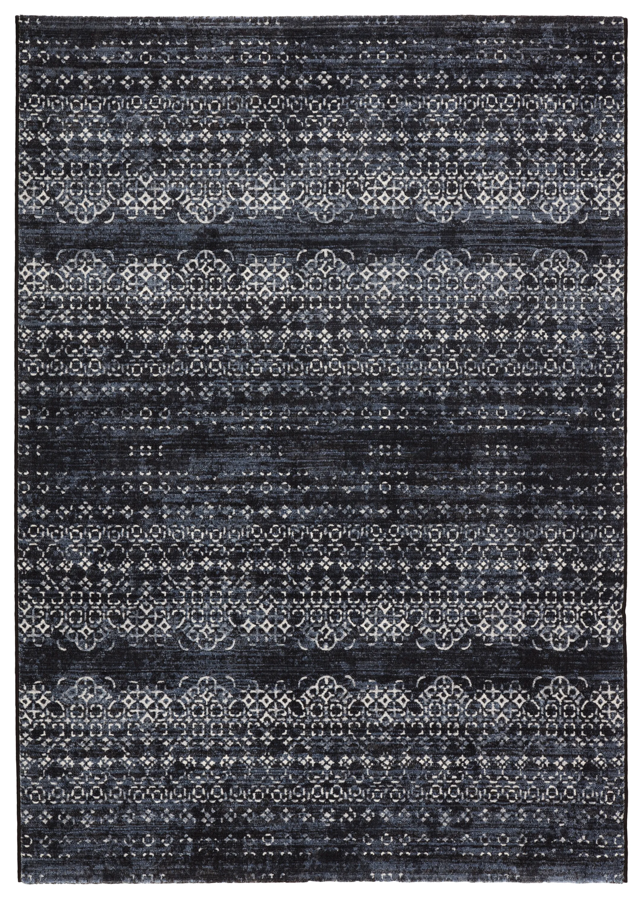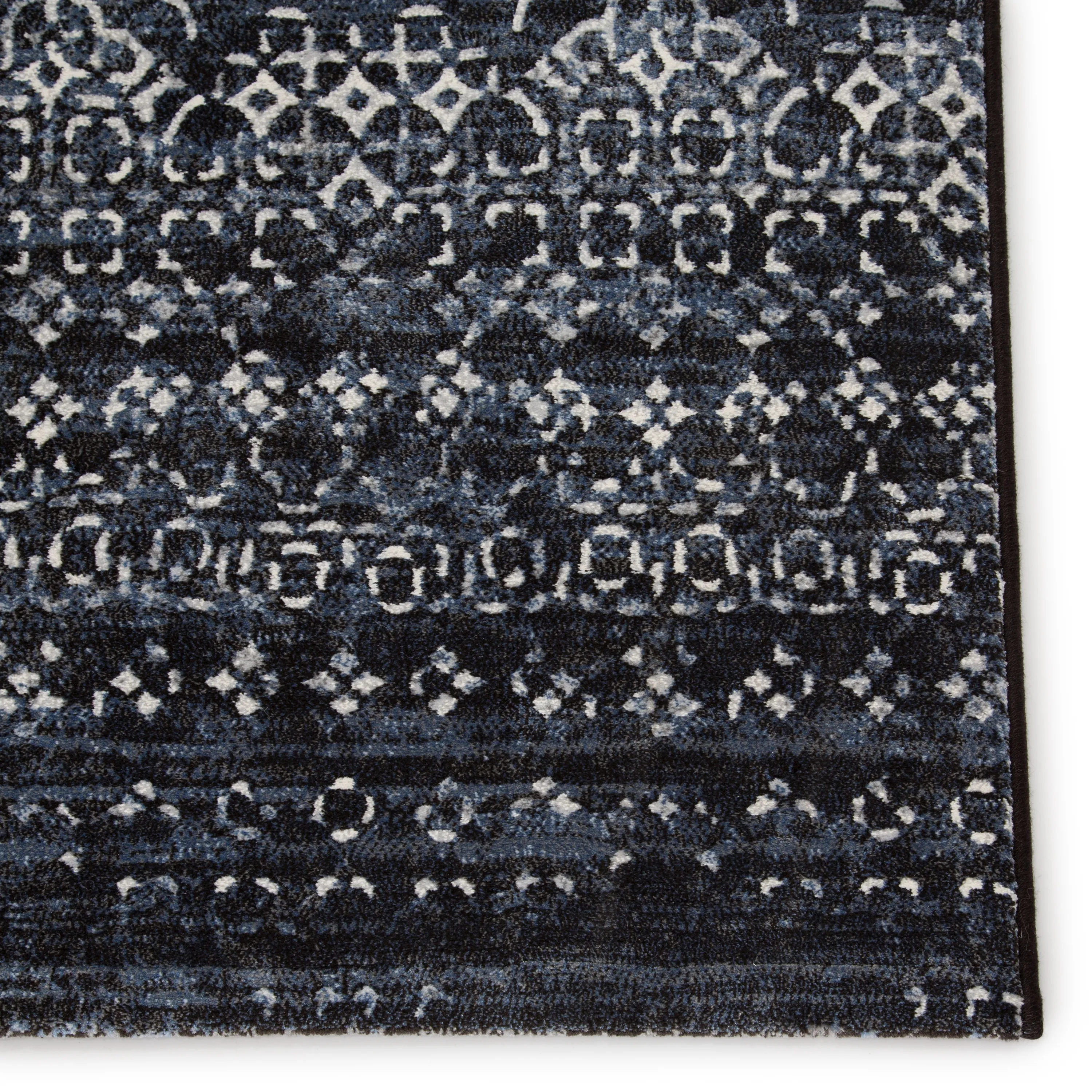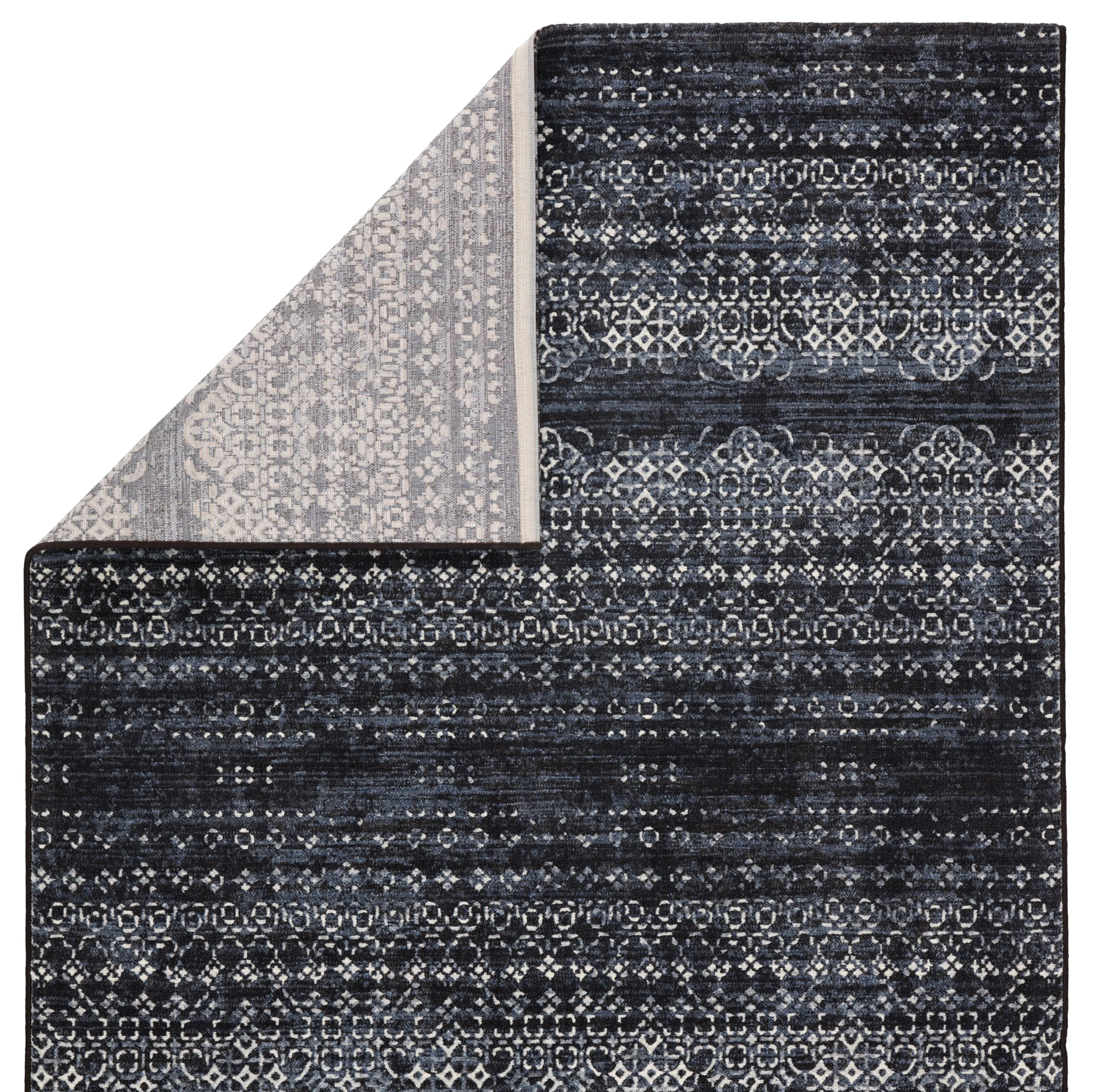 The durable and easy-care Dash collection boasts textural designs and worldly appeal. The Ardor area rug showcases a deep indigo and light gray Moroccan trellis motif for instant impact and globally inspired beauty. This power-loomed polyester rug is perfect for high-traffic spaces and provides cozy cushioning underfoot with high-density pile.