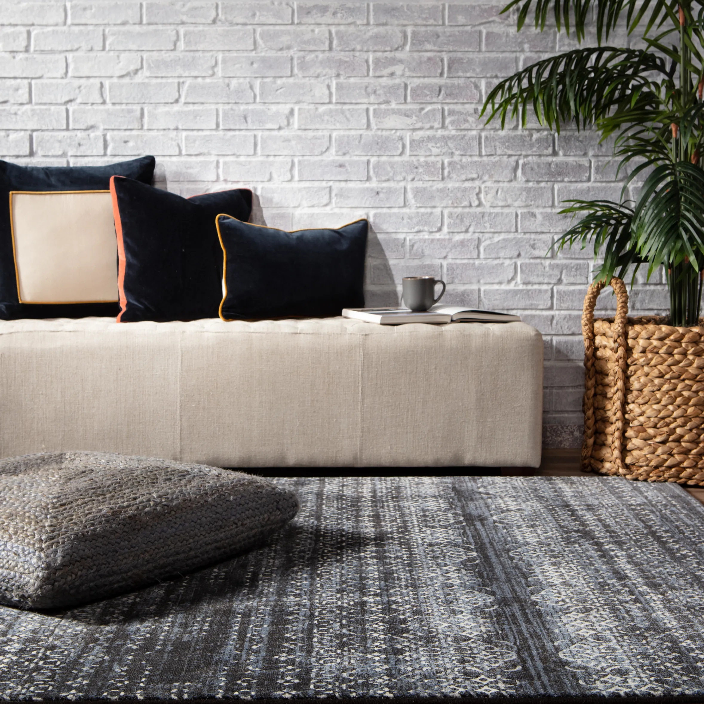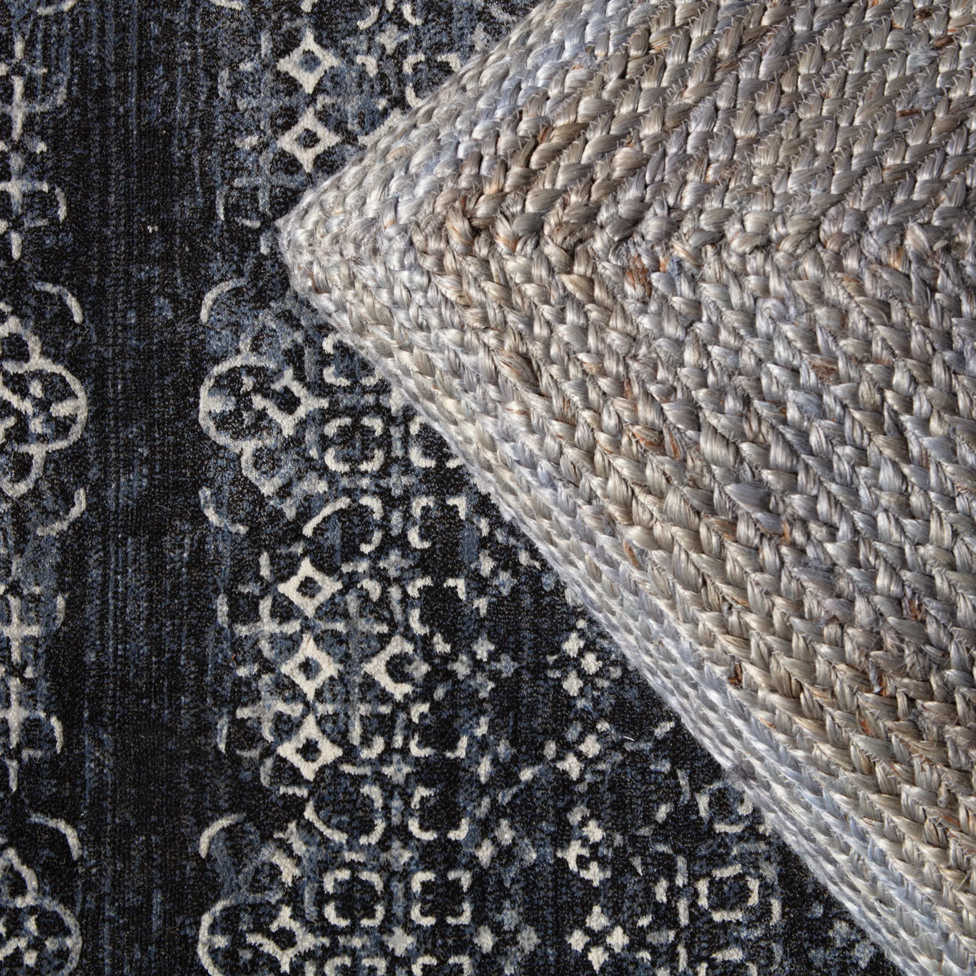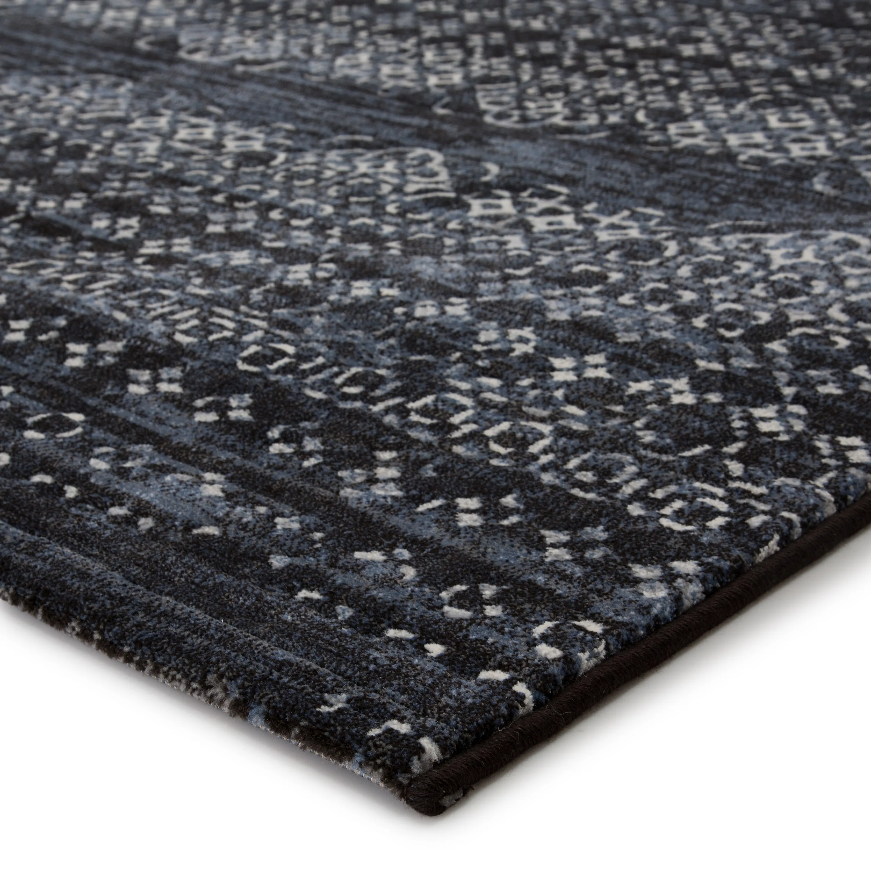 The durable and easy-care Dash collection boasts textural designs and worldly appeal. The Ardor area rug showcases a deep indigo and light gray Moroccan trellis motif for instant impact and globally inspired beauty. This power-loomed polyester rug is perfect for high-traffic spaces and provides cozy cushioning underfoot with high-density pile.