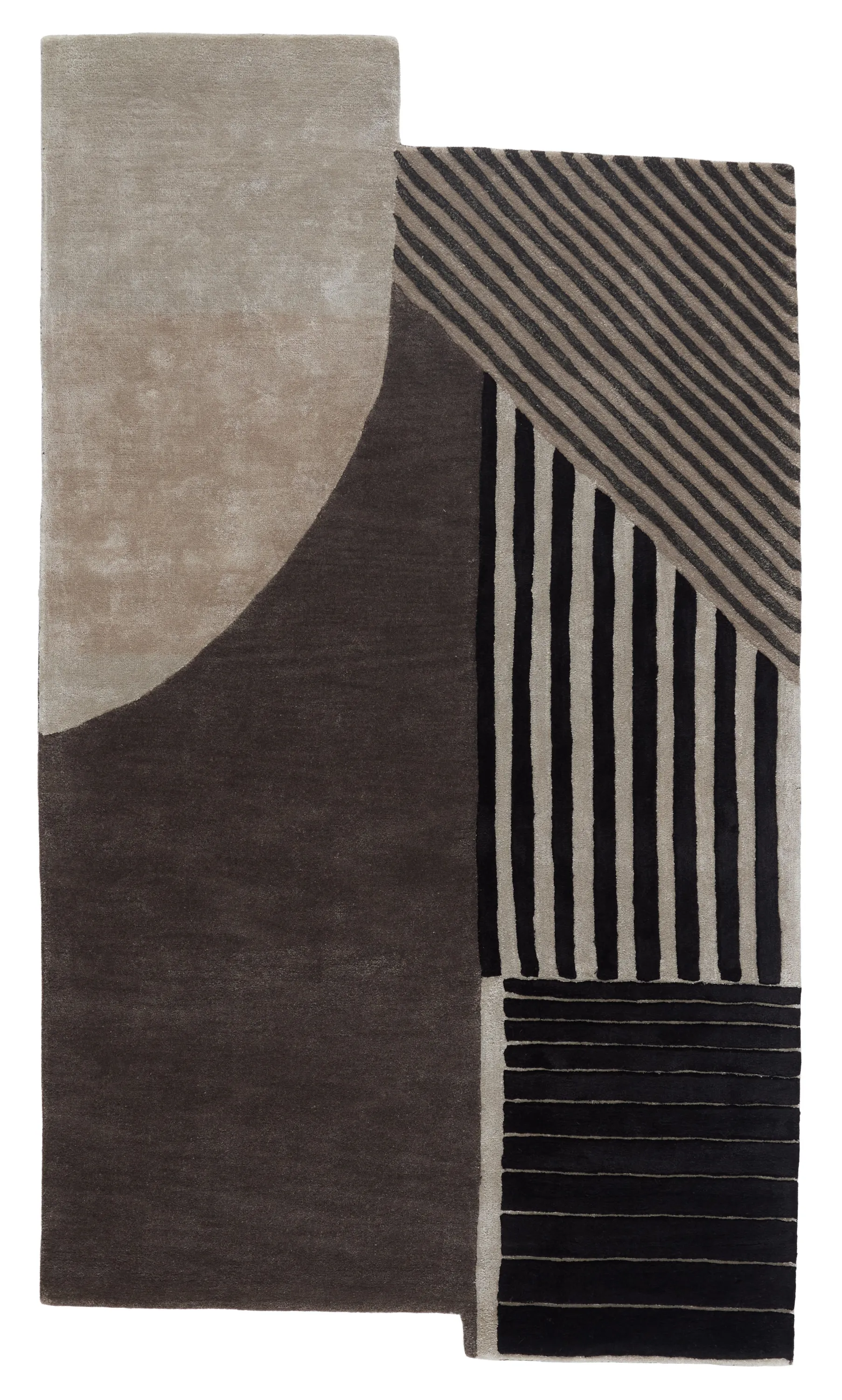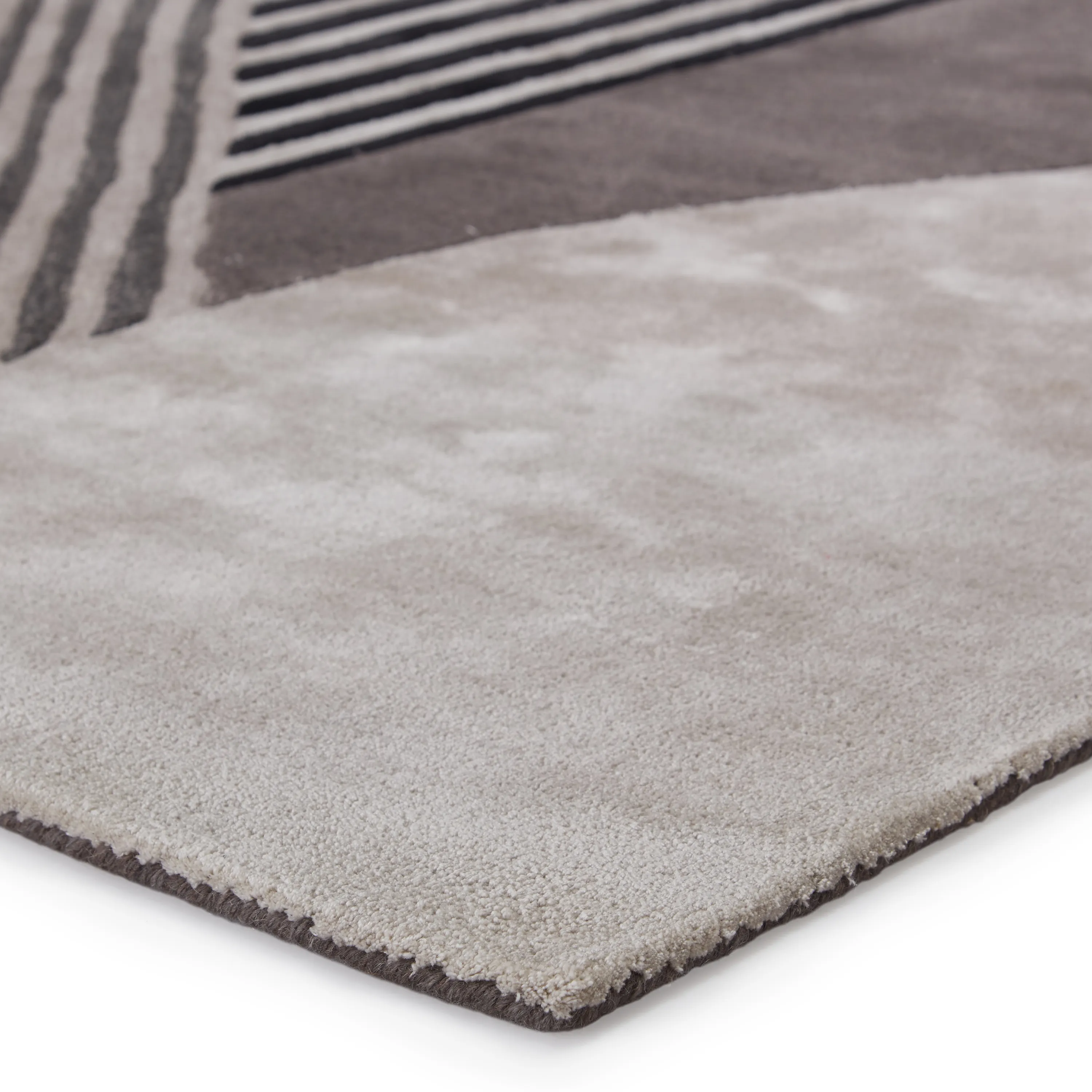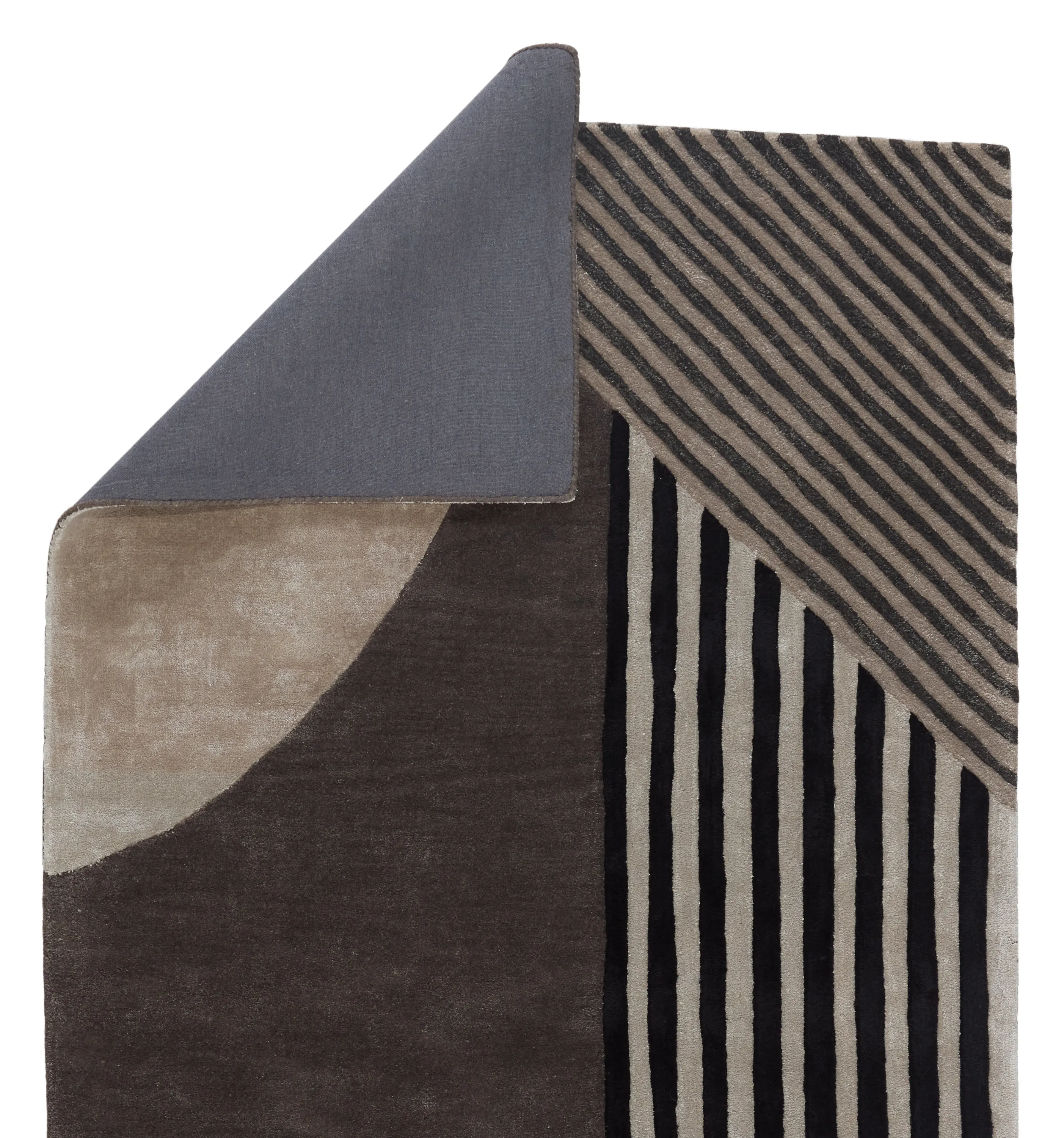The sleek and angular Iconic collection infuses interiors with bold colorways and modern style. A playful geometric motif and chic gray and black colorway come together to form the irregularly shaped Ginata rug. Hand tufted of viscose and New Zealand wool, this fresh accent boasts carved pile for added texture and dimension.