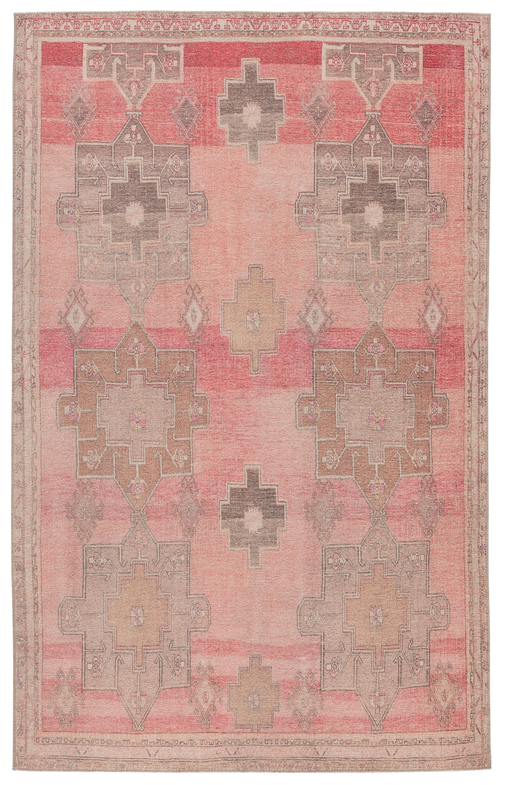 The vintage-inspired Kairos collection brings a playful and warm vibe to contemporary spaces. The Faron rug features tribal medallions in a pink, tan, and gray colorway, perfectly distressed for a boho-chic touch. This printed style offers the timelessness of a classic Turkish motif with the versatility and affordability of a power-loomed rug.
