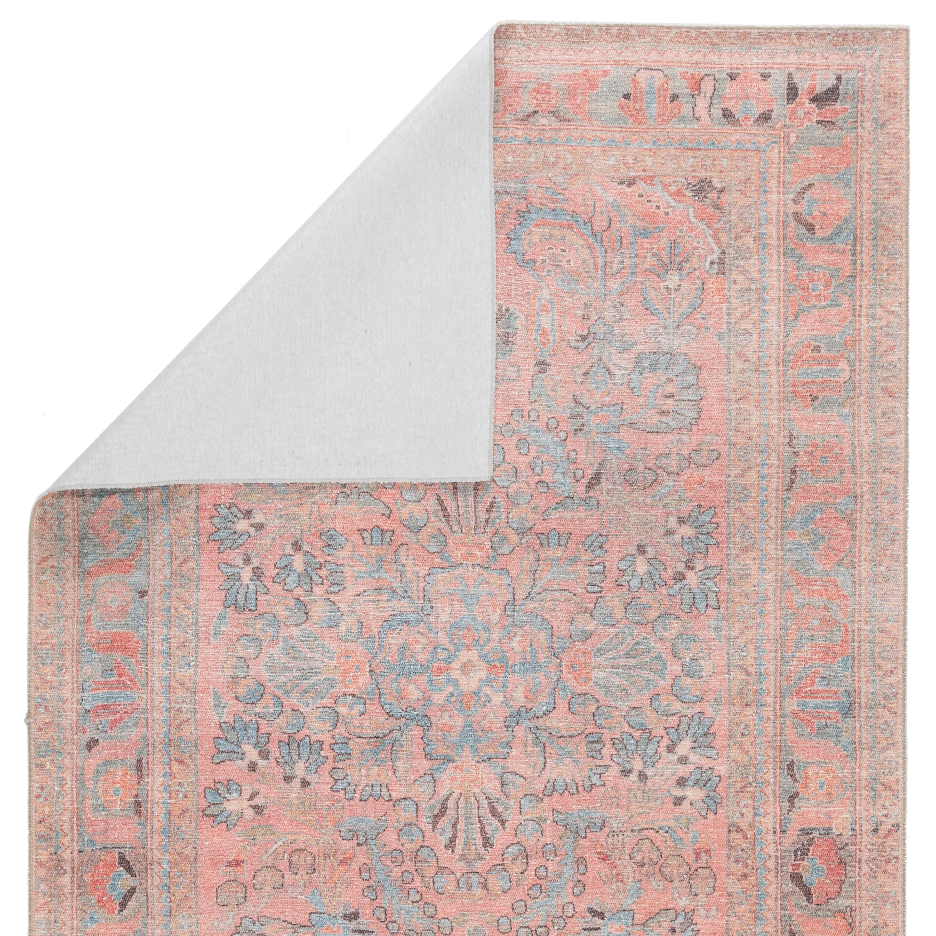The Kindred collection melds the timelessness of vintage designs with modern, livable style. The Pippa area rug boasts a whimsical medallion with floral accents and contemporary pink, sky blue, and gray colorway. This low-pile rug is made of soft polyester and features a one-of-a-kind antique rug digitally printed design.
