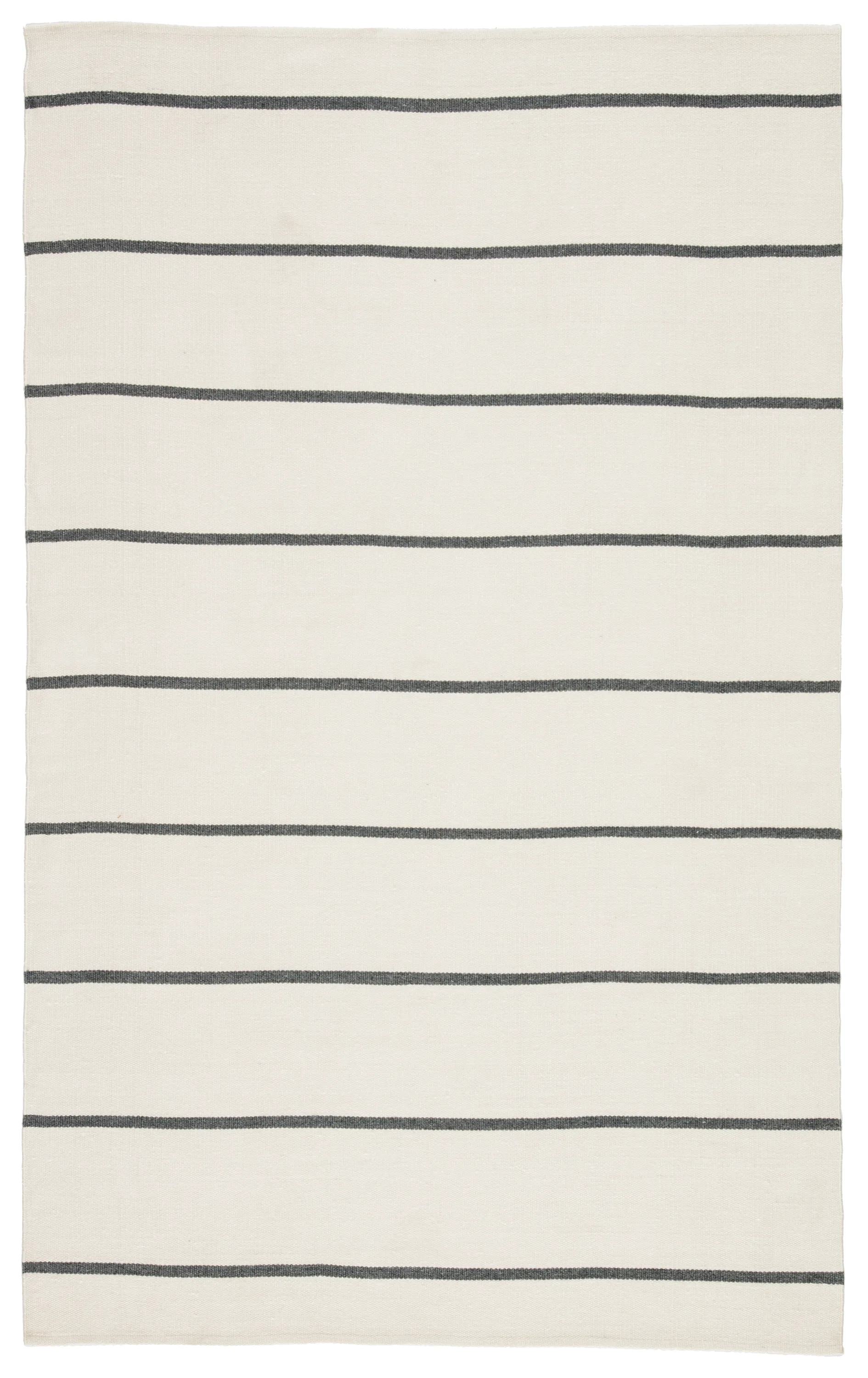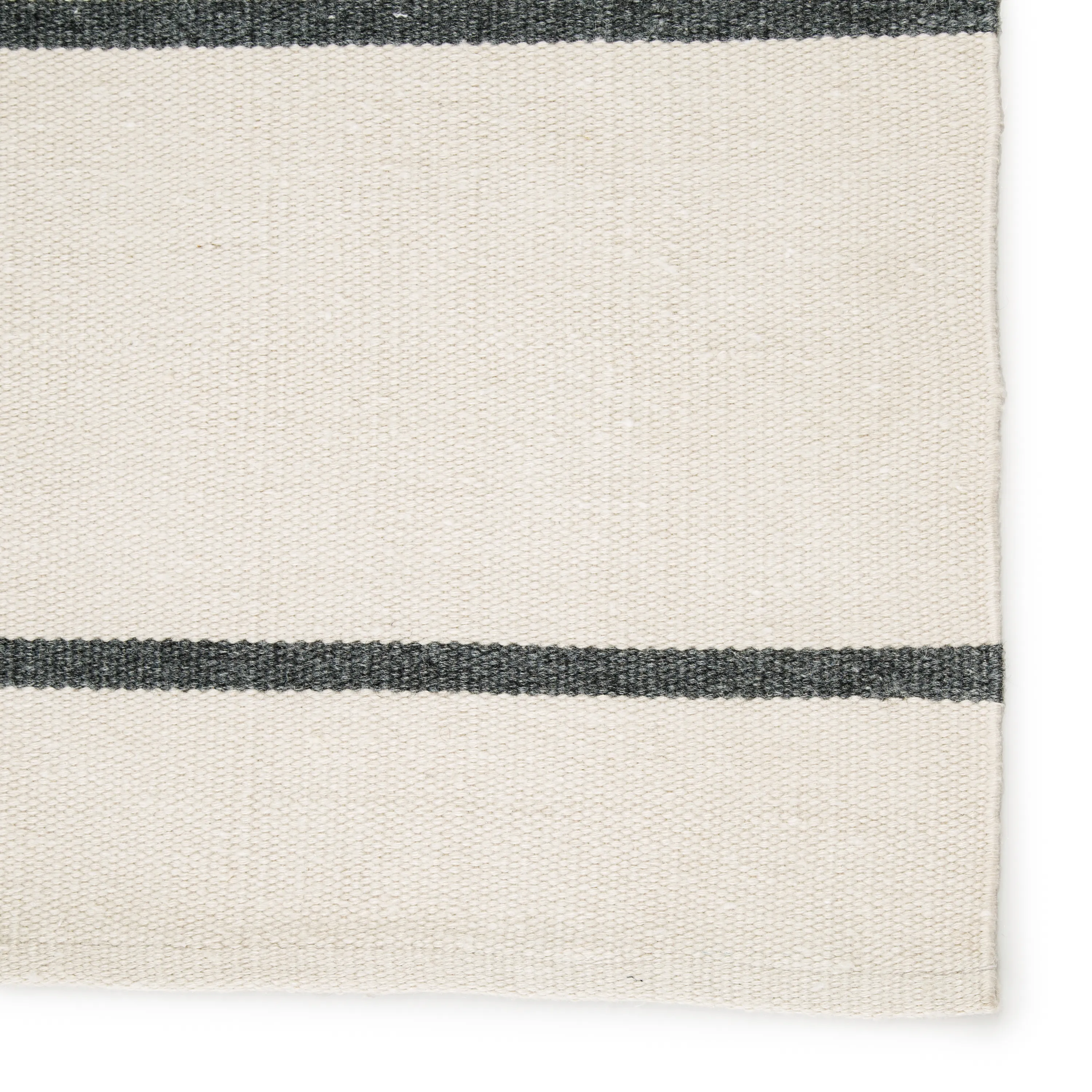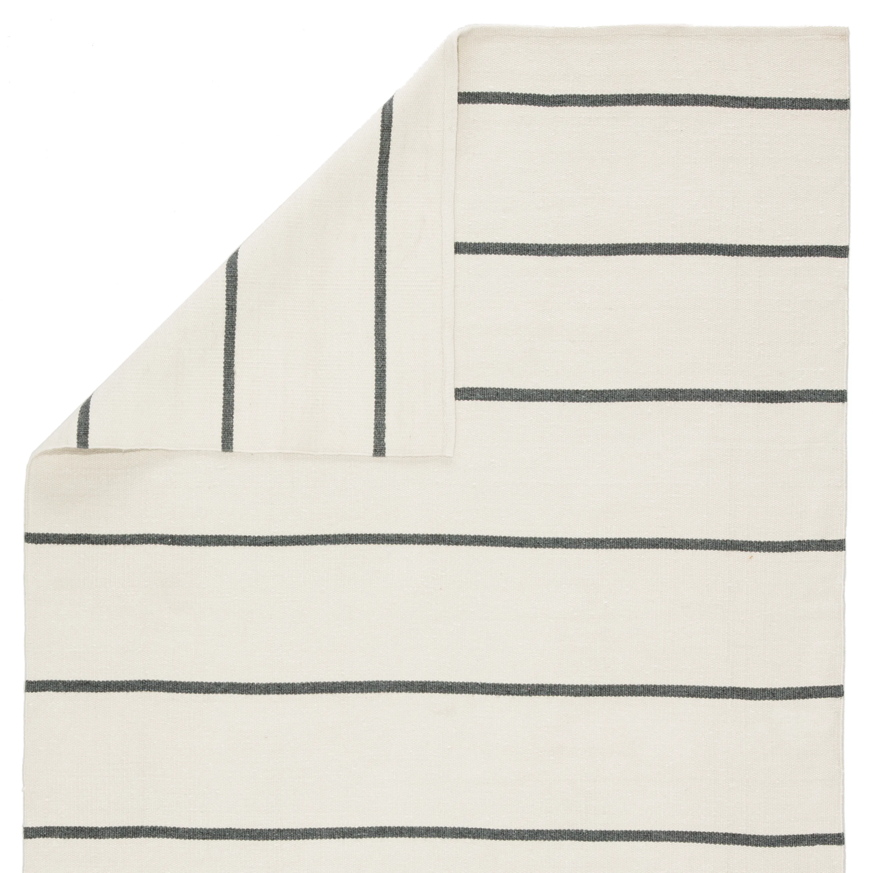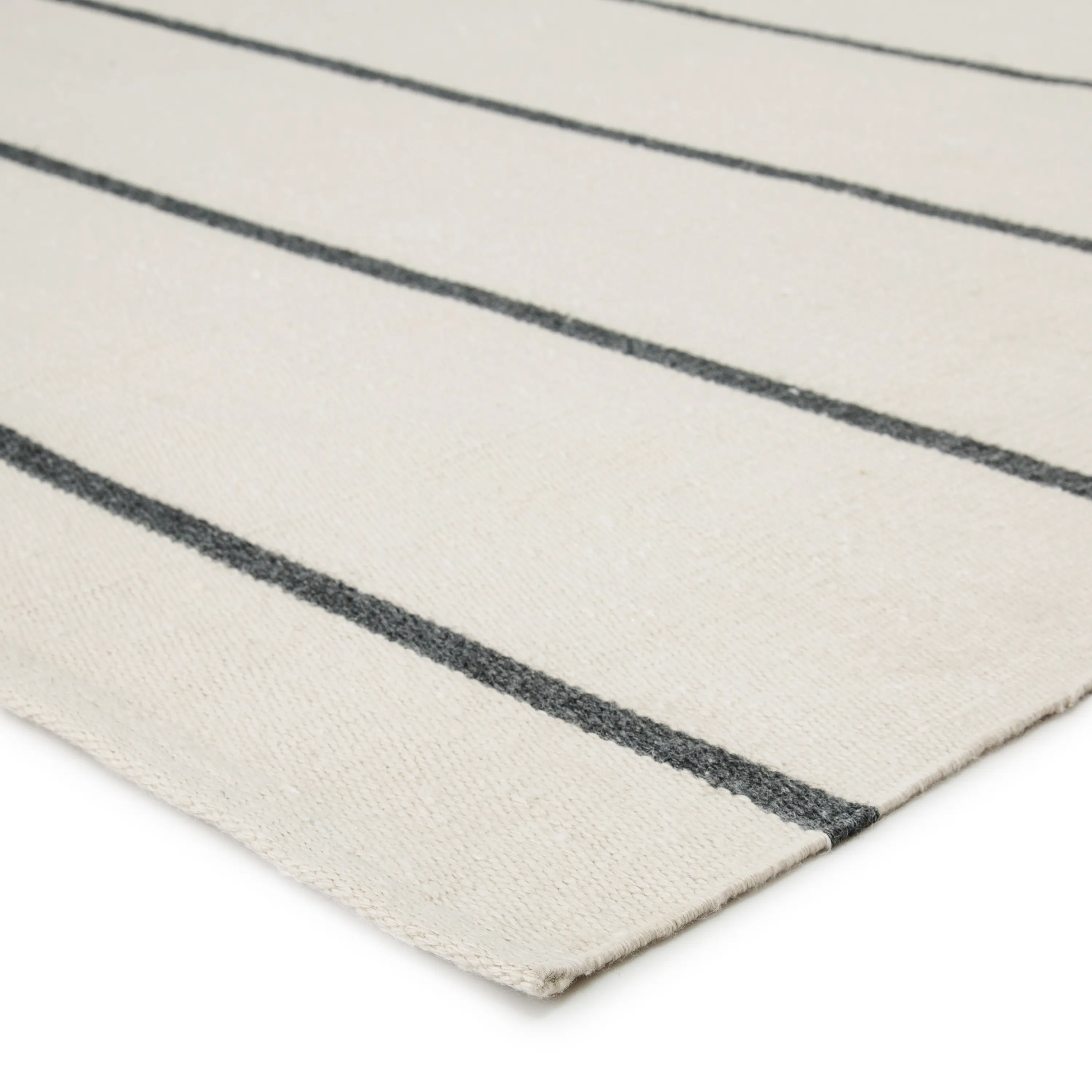Relaxed and sophisticated in the same moment, the Lanai collection is a chic assortment of nautical designs. The pin stripe Corbina area rug infuses both indoor and outdoor spaces with a classic colorway of ivory and dark gray. Hand woven of eco-friendly PET yarns, this durable rug is easy to clean and perfect for high-traffic areas.