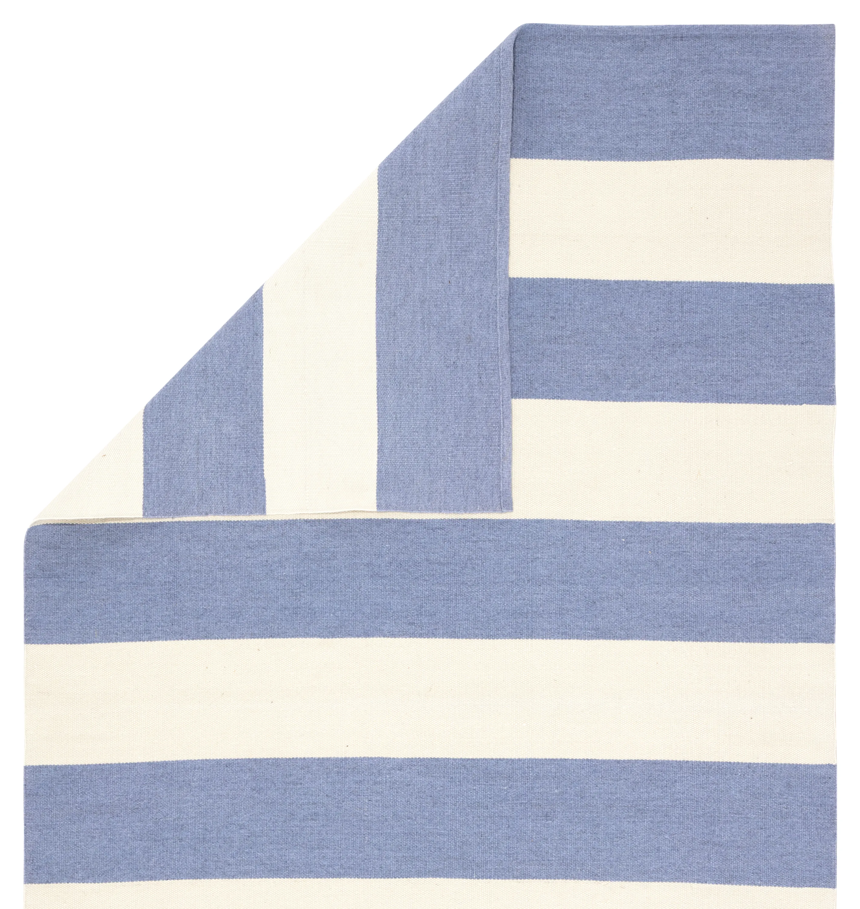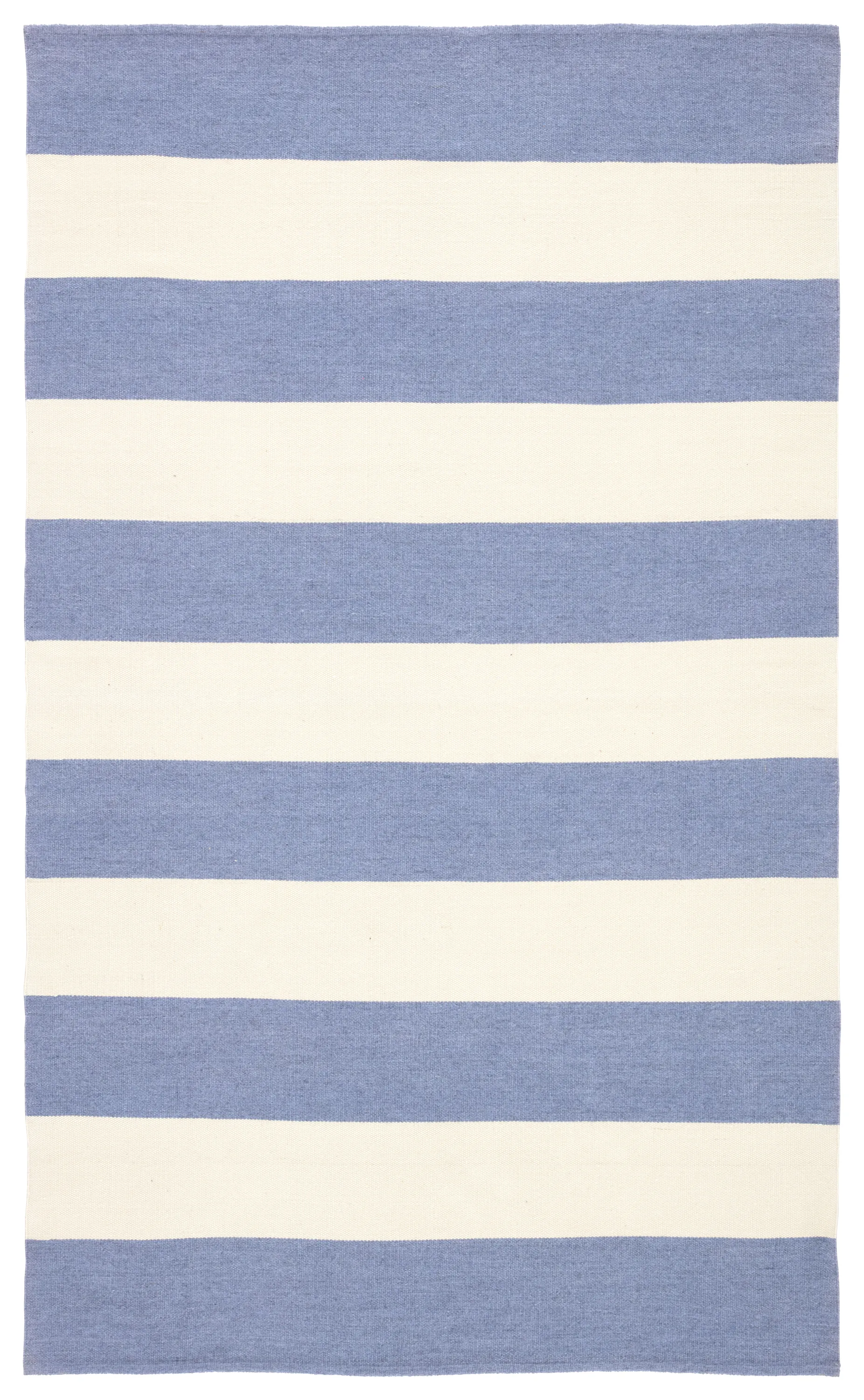 Relaxed and sophisticated in the same moment, the Lanai collection is a chic assortment of nautical designs. The bold stripe Remora area rug infuses both indoor and outdoor spaces with a classic colorway of blue and ivory. Hand woven of eco-friendly PET yarns, this durable rug is easy to clean and perfect for high-traffic areas.