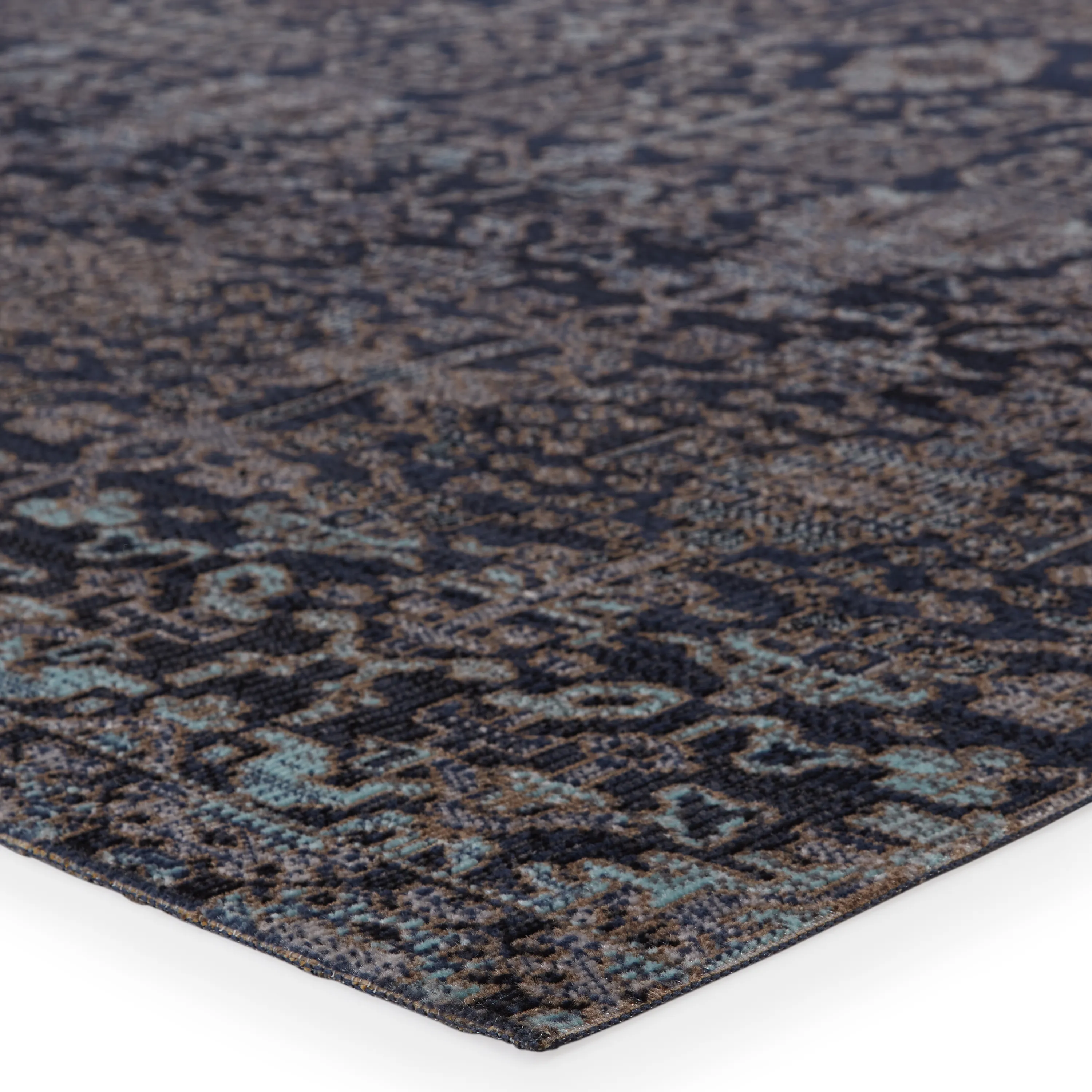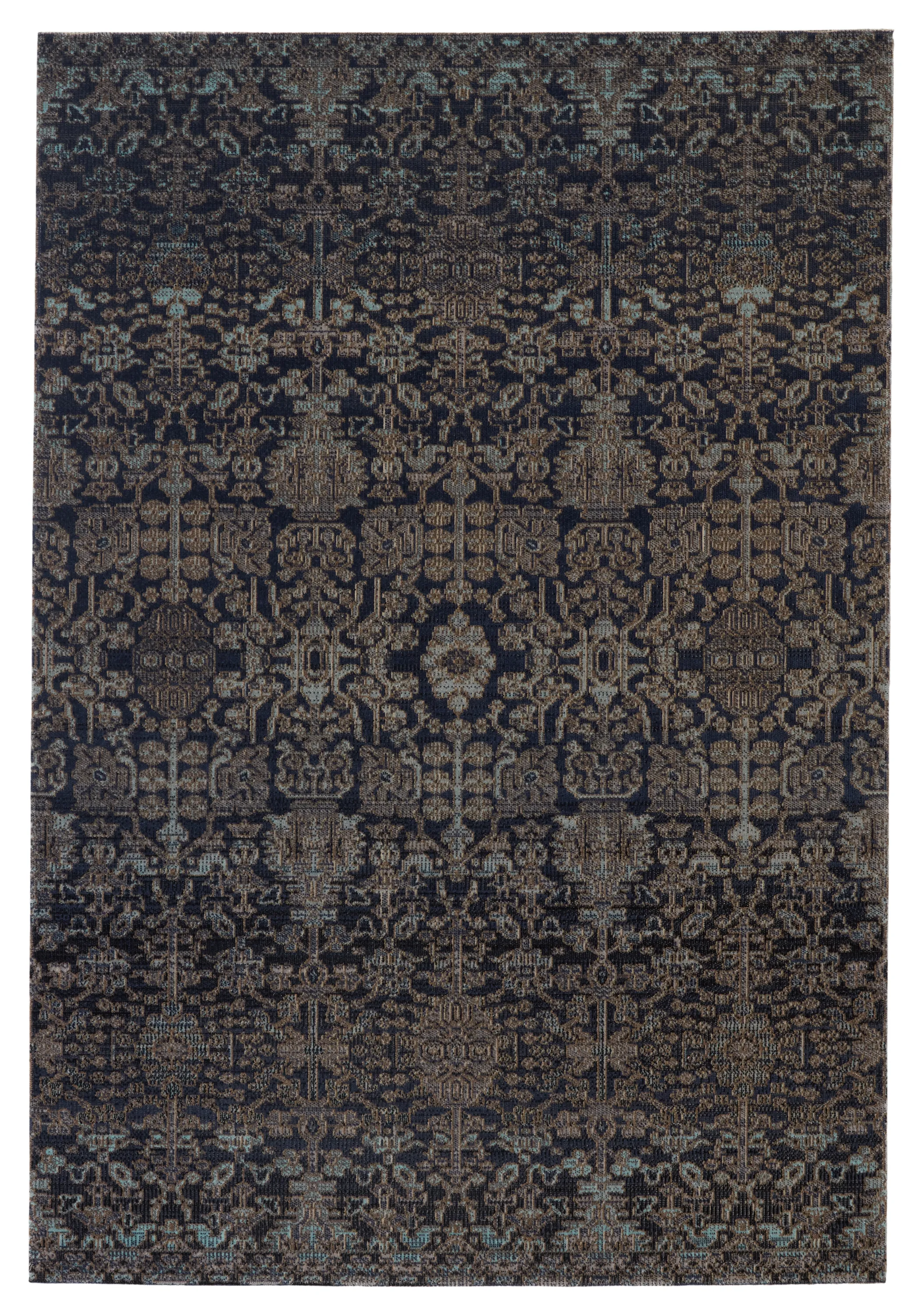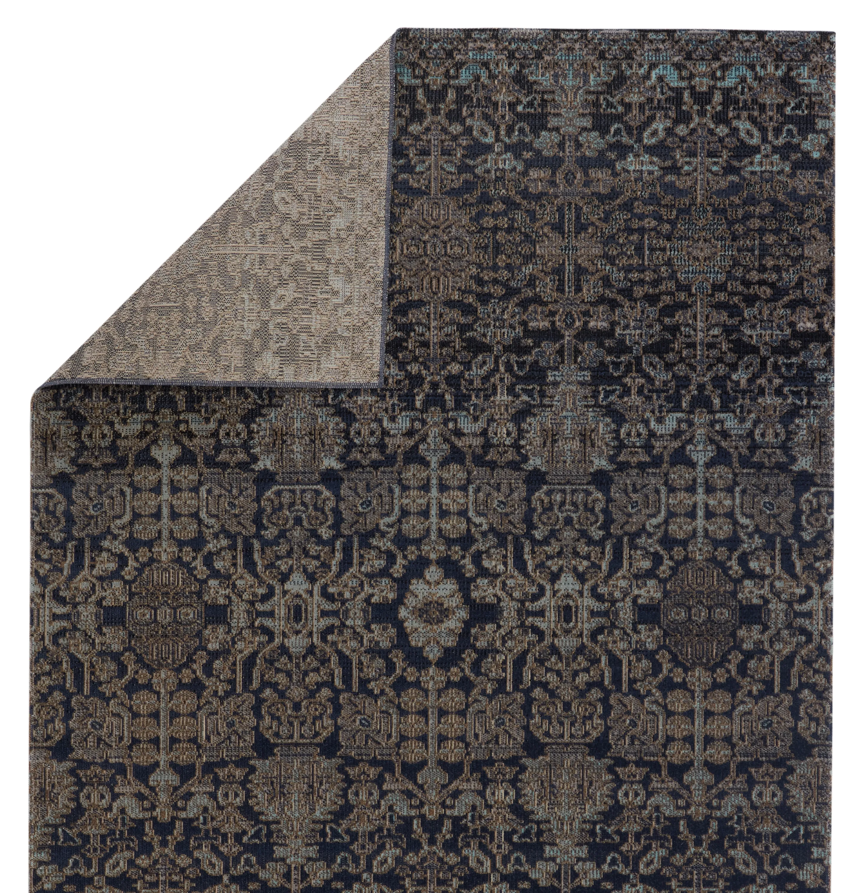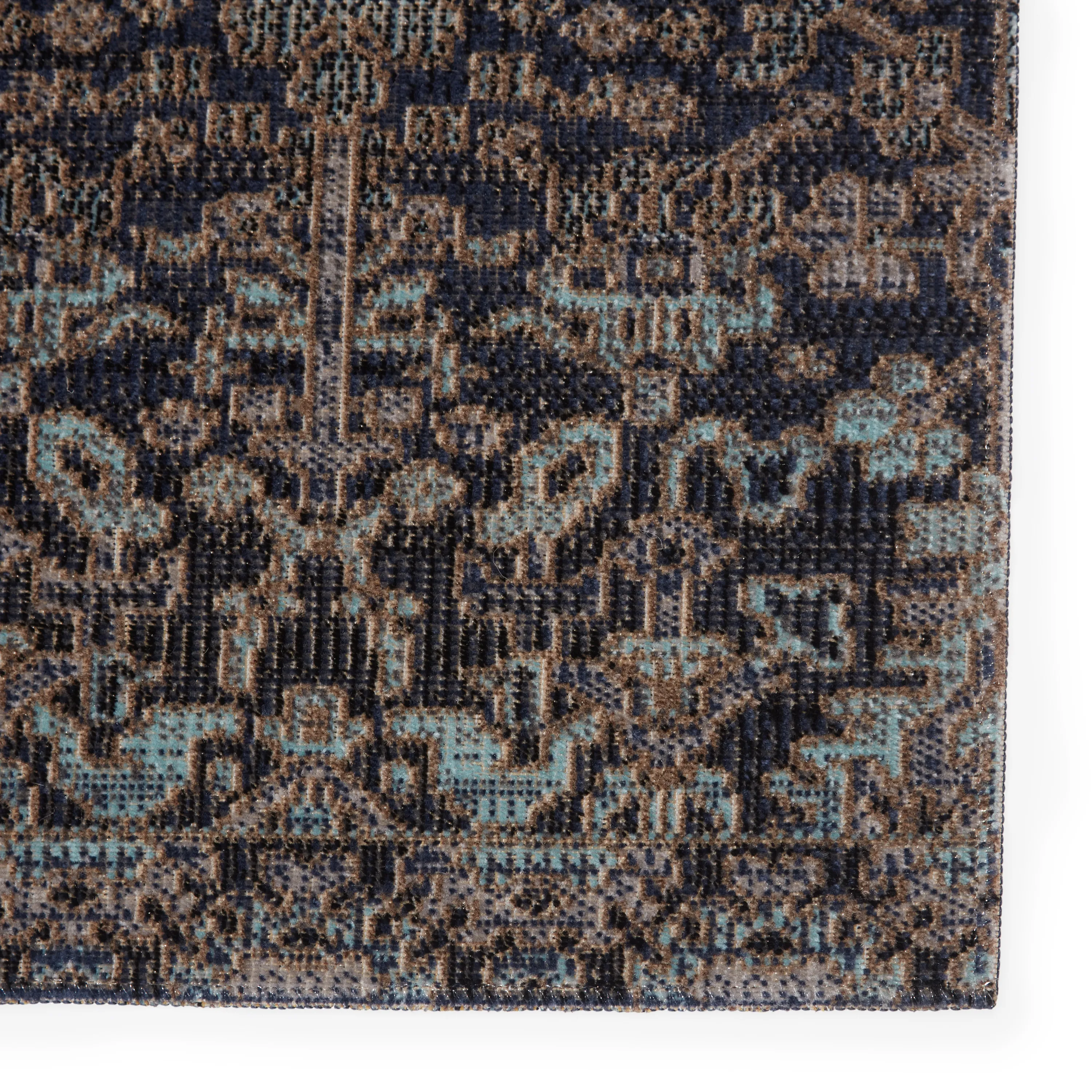 Capturing the beauty of antique Turkish rugs, the indoor-outdoor Polaris collection combines admired traditional designs with a durable, light-weight polypropylene construction. The Bodega rug features a vibrant and whimsical take on an ornate brocade motif with deep blue hues mixed with darker, earthy tones. This bright, globally inspired rug offers a bold and statement-making addition to dining rooms, patios, and kitchens.