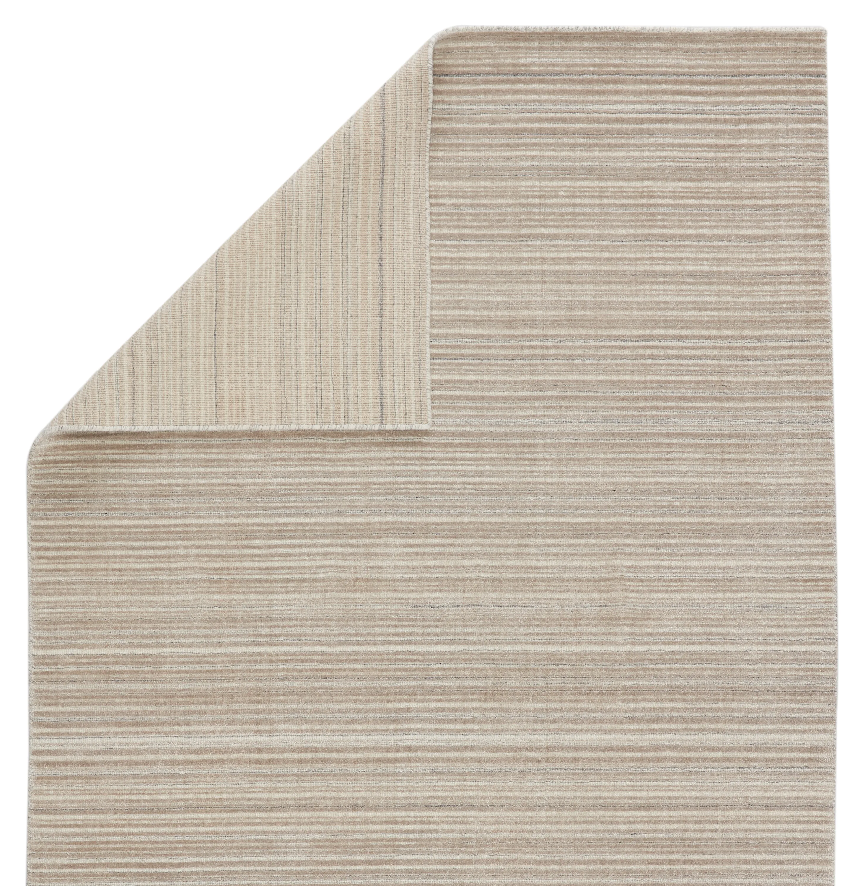 The easy-to-decorate, earthy tones of the Second Sunset collection prove that simplicity can sometimes be striking. The Gradient rug is hand loomed of durable wool and rayon made from bamboo for a sumptuous and inviting hand. The variation in the light taupe, ivory, and gray tones of this lustrous rug creates stunning depth and dimension with the help of subtle striation in the cut-and-looped pile.