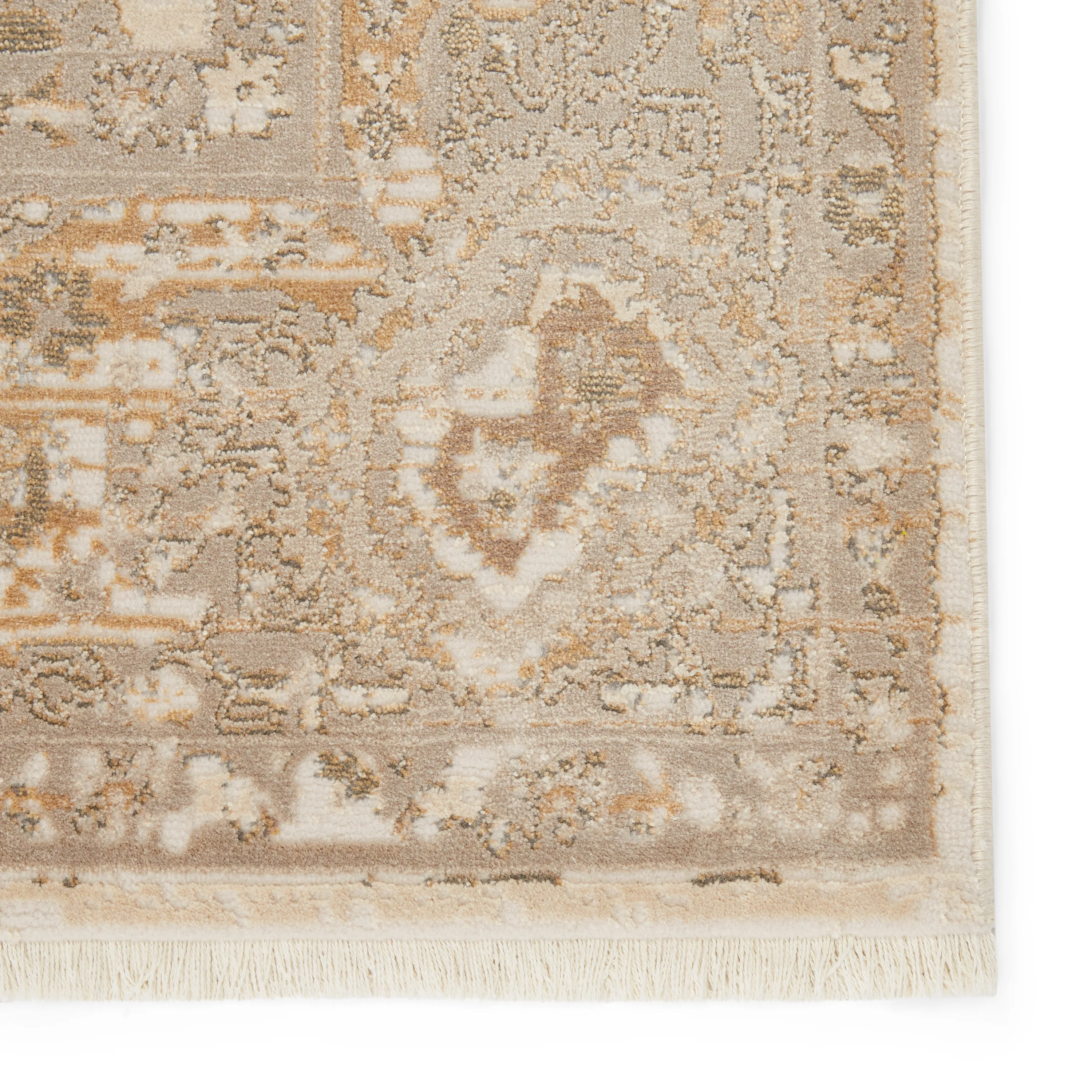 The elegant Vienne collection showcases the on-trend blanc de blanc look for an effortless and luxuriously vintage statement. The Baptiste rug boasts a distressed floral medallion motif in light tones of cream, taupe, light gray, and metallic gold. Soft and lustrous, this chameleon-like design emulates the timeless style of a Turkish hand-knotted rug, but in an accessible polyester and viscose power-loomed quality.