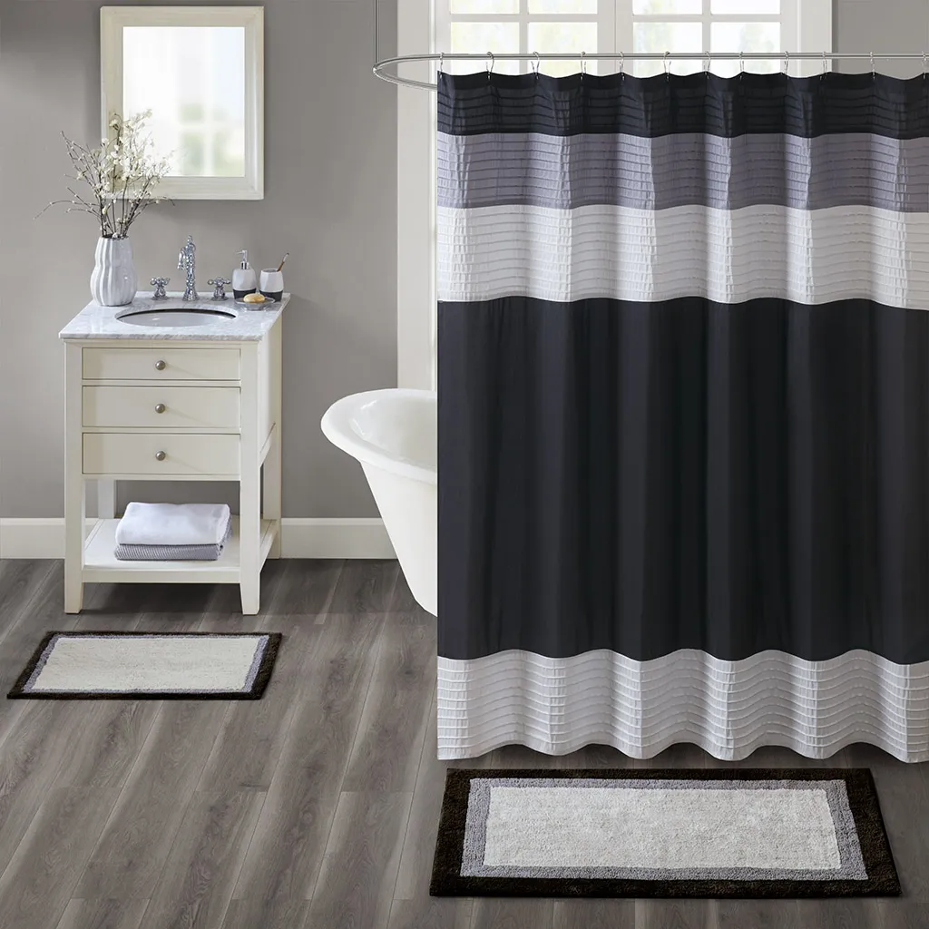 The Madison Park Amherst Cotton Tufted Bath Rug Collection provides a stylish and sophisticated look for your bathroom. Made from 100% tufted cotton, this rug is machine washable and incredibly soft for your feet to rest on. With its skid resistant reverse, the neutral color palette, and border design of this cotton bath rug is sure to bring new life into your bathroom decor. Multiple sizes and colors are available and sold separately, perfectly providing endless style options to suit any bathroom size and decor!