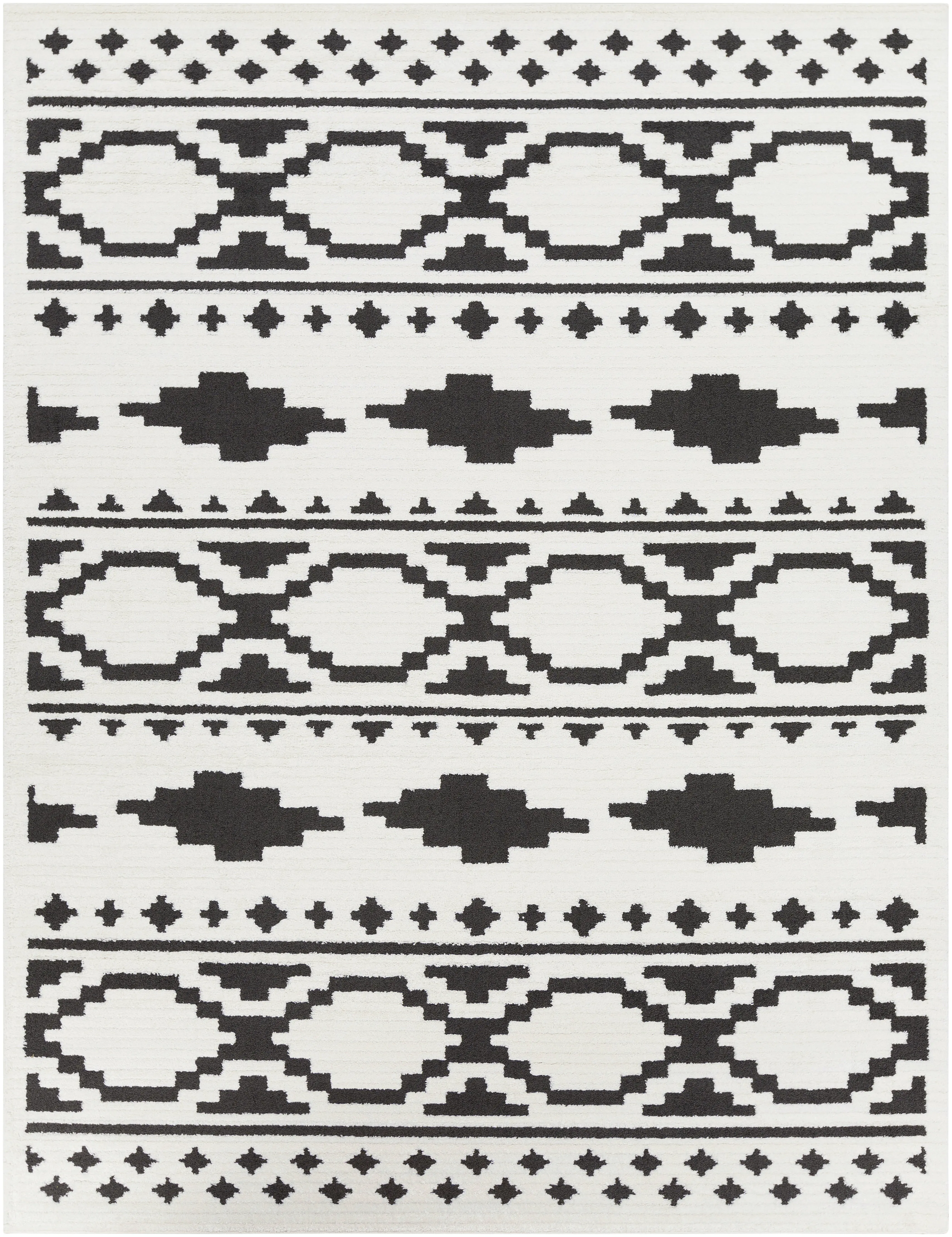 Our rugs from the Moroccan Shag Collection feature striking global inspired designs that endure at the forefront of contemporary trends. The meticulously woven construction of these pieces boasts durability and will provide natural charm into your decor space. Made with Polypropylene, Polyester in Turkey, and has High Pile. Spot Clean Only, One Year Limited Warranty.