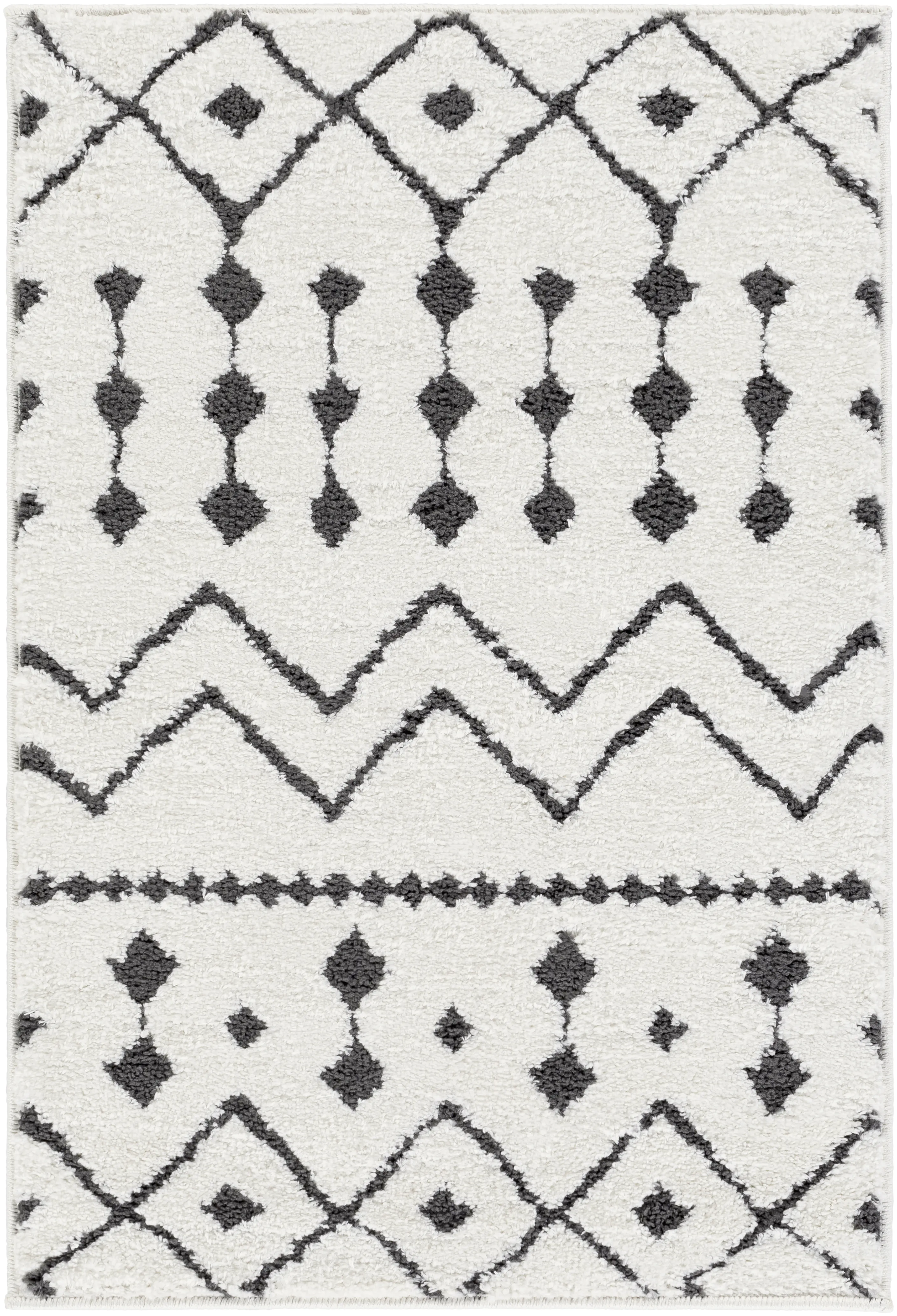 Our rugs from the Moroccan Shag Collection feature striking global inspired designs that endure at the forefront of contemporary trends. The meticulously woven construction of these pieces boasts durability and will provide natural charm into your decor space. Made with Polypropylene, Polyester in Turkey, and has High Pile. Spot Clean Only, One Year Limited Warranty.