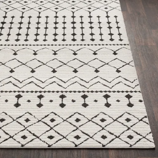 Our rugs from the Moroccan Shag Collection feature striking global inspired designs that endure at the forefront of contemporary trends. The meticulously woven construction of these pieces boasts durability and will provide natural charm into your decor space. Made with Polypropylene, Polyester in Turkey, and has High Pile. Spot Clean Only, One Year Limited Warranty.