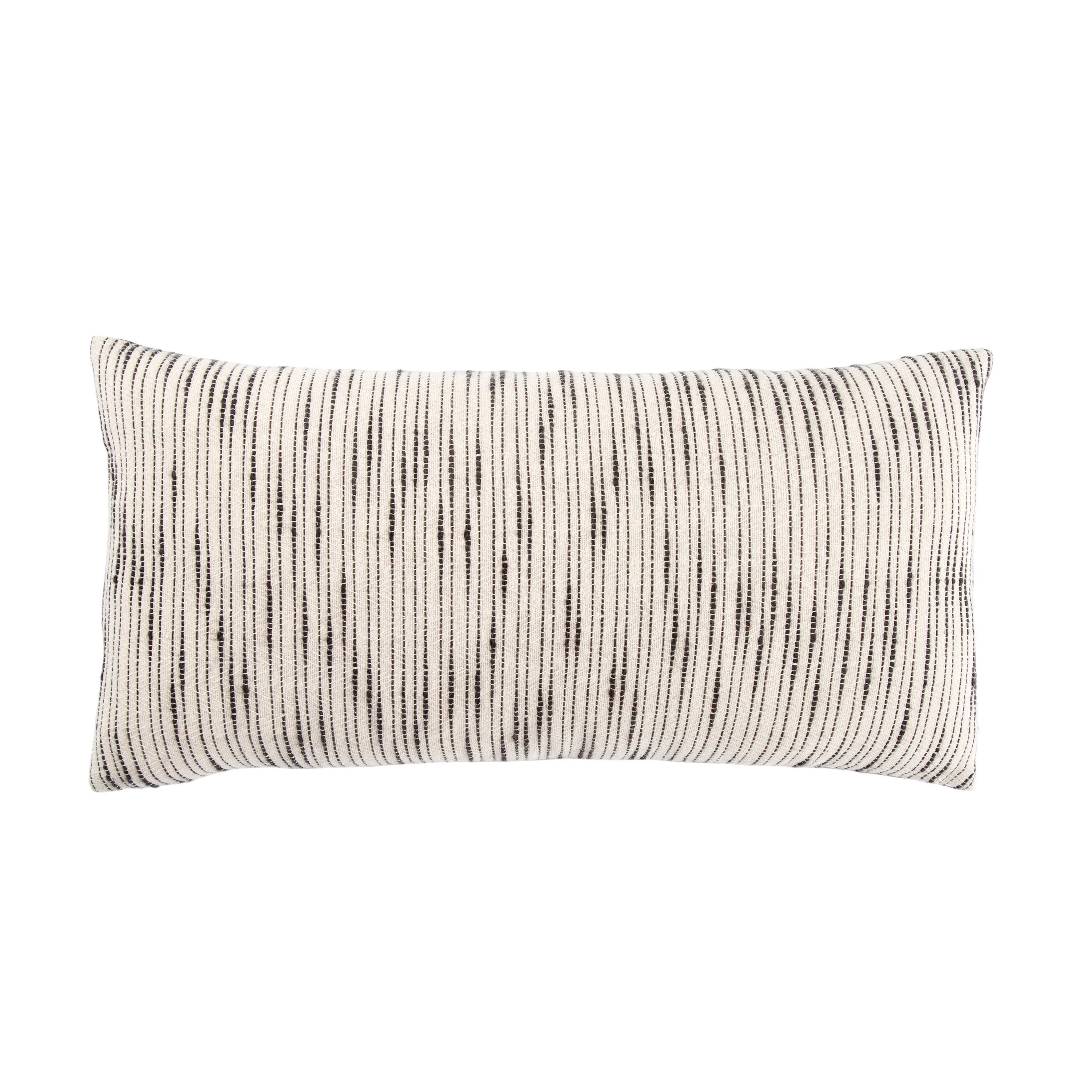 The Mercado pillow collection marries bohemian charm and irresistible texture. The long Linnean lumbar pillow is crafted of soft cotton, featuring a stitched linear design that recalls a traditional raw silk look. In contrasting charcoal gray and ivory, this plush accent complements a range of stylish spaces.
