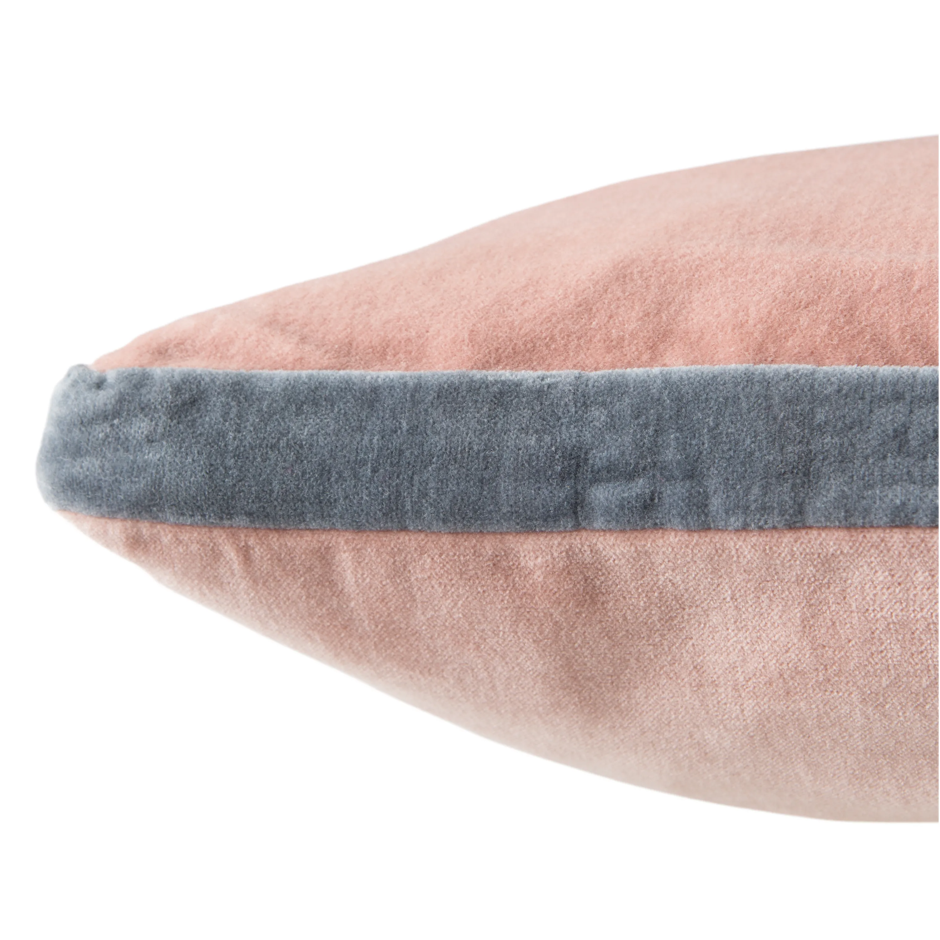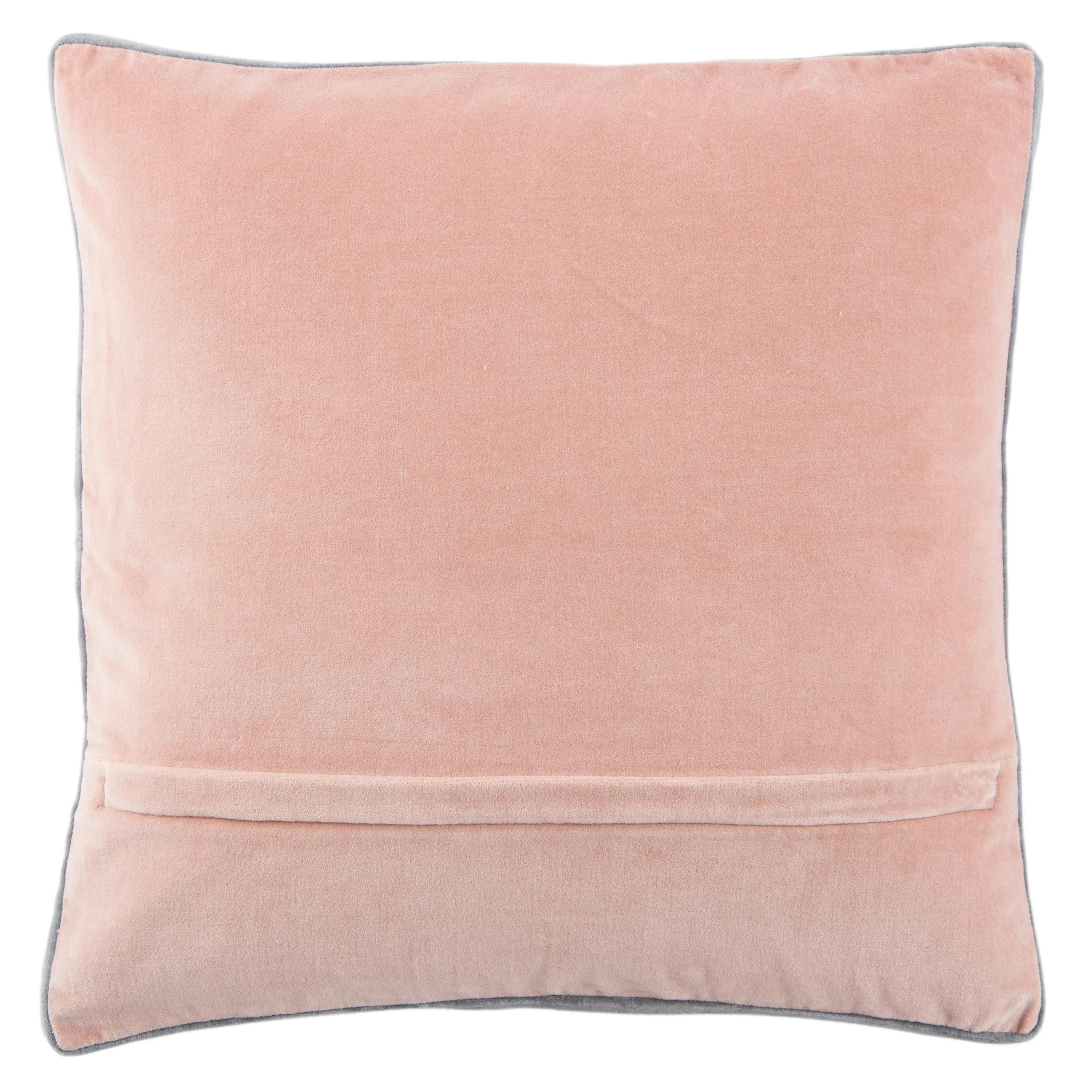 The Emerson pillow collection features an assortment of clean-lined, coordinating accents crafted of luxe cotton velvet. The Bryn pillow lends simple sophistication to modern spaces with a solid, soft blush color, embellished with a cool gray banded edge.