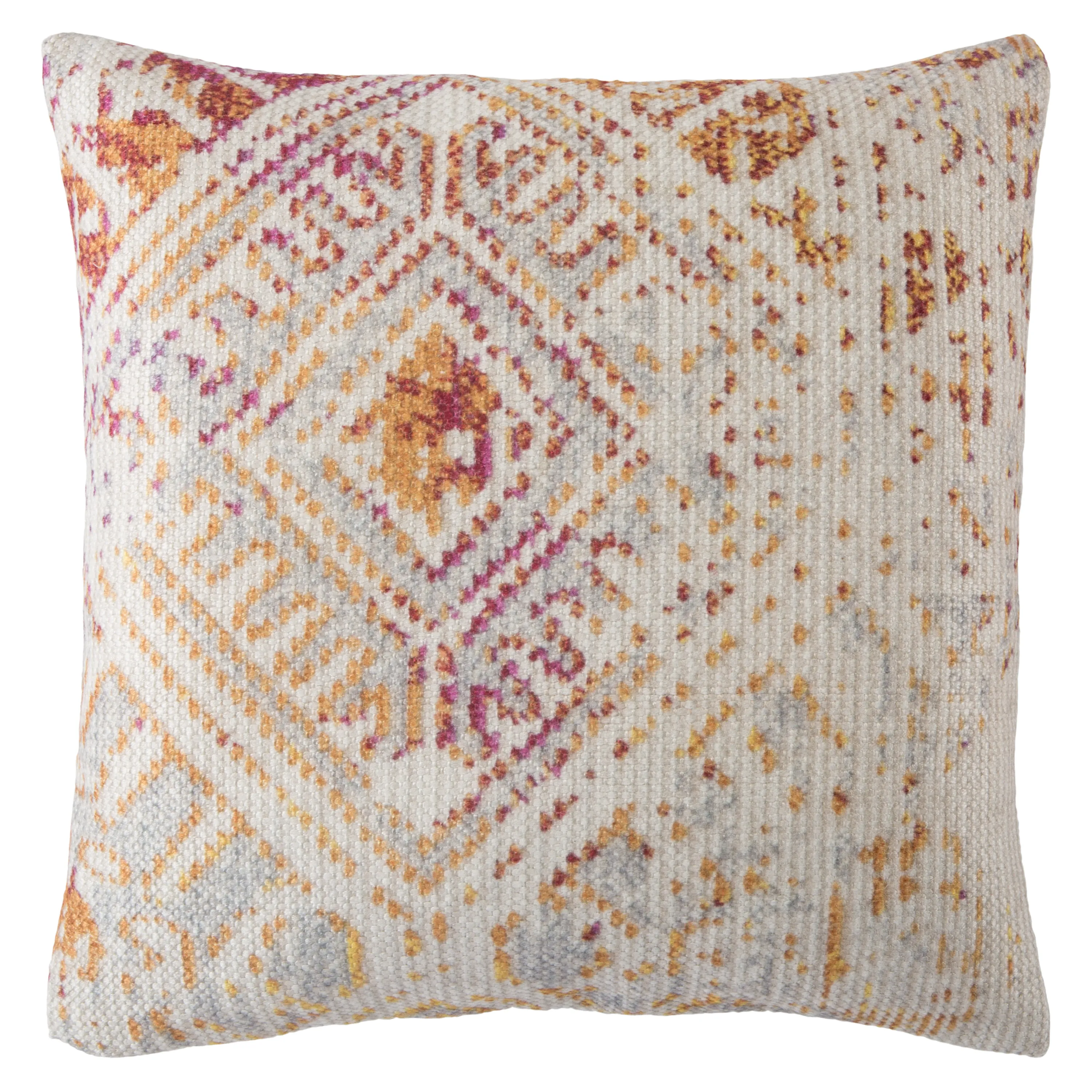 Contemporary pattern play and vibrant colors lend Nikki Chu's Groove pillow collection a whimsical, boho vibe. The Siva pillow boasts a pink, orange, and gold diamond motif on a cream background and soft, durable feel. Perfect for indoor and outdoor spaces, this accent is made of easy-clean polyester and features a subtle, luxe sheen.