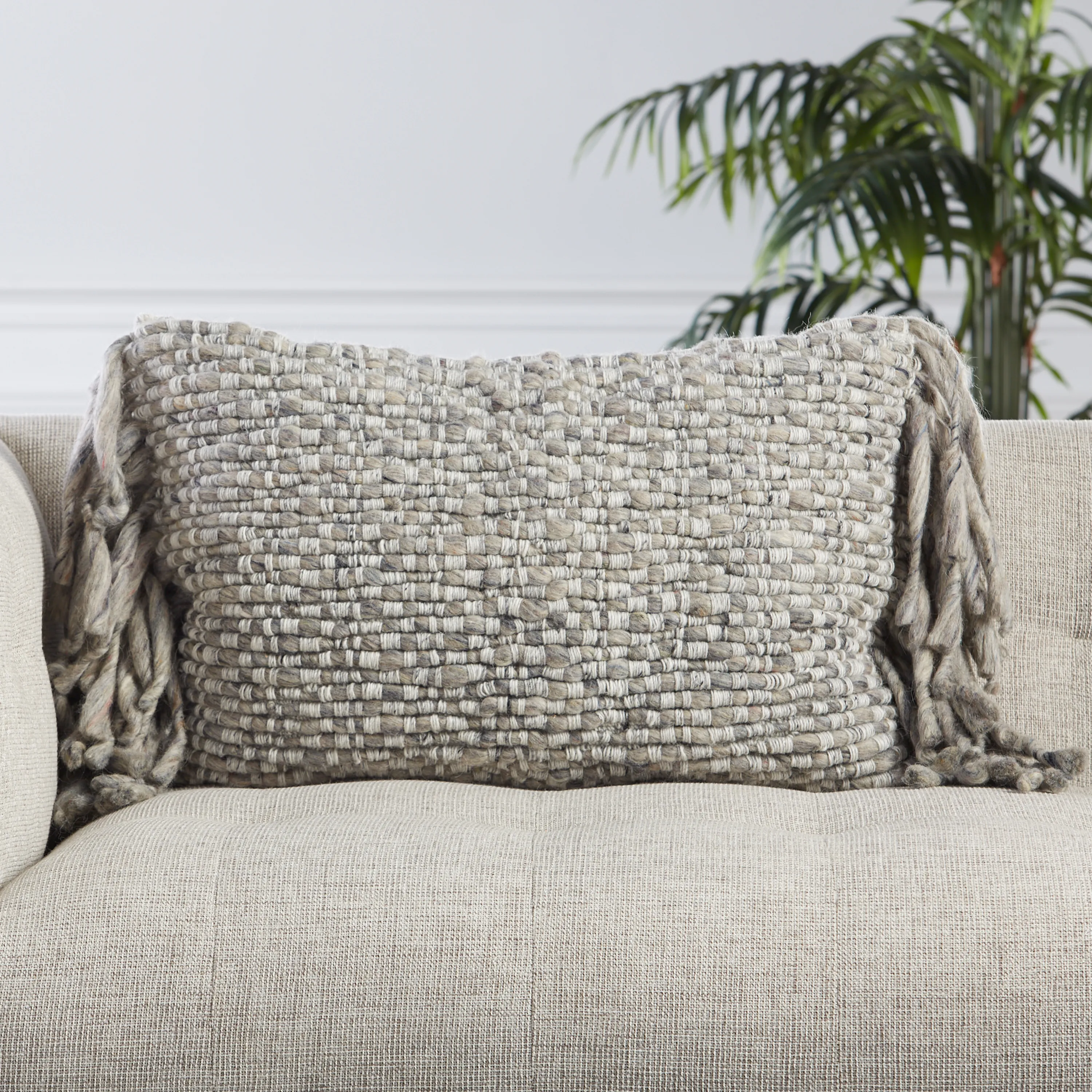 The Angora pillow collection offers plush, soft texture and a modern vibe to any space. The Cilo pillow features mixed-tone, gray woolen strands, embellished by wrapped white threadwork. The long, twisted tassels of this chic pillow lend an eclectic, global look to beds and sofas.
