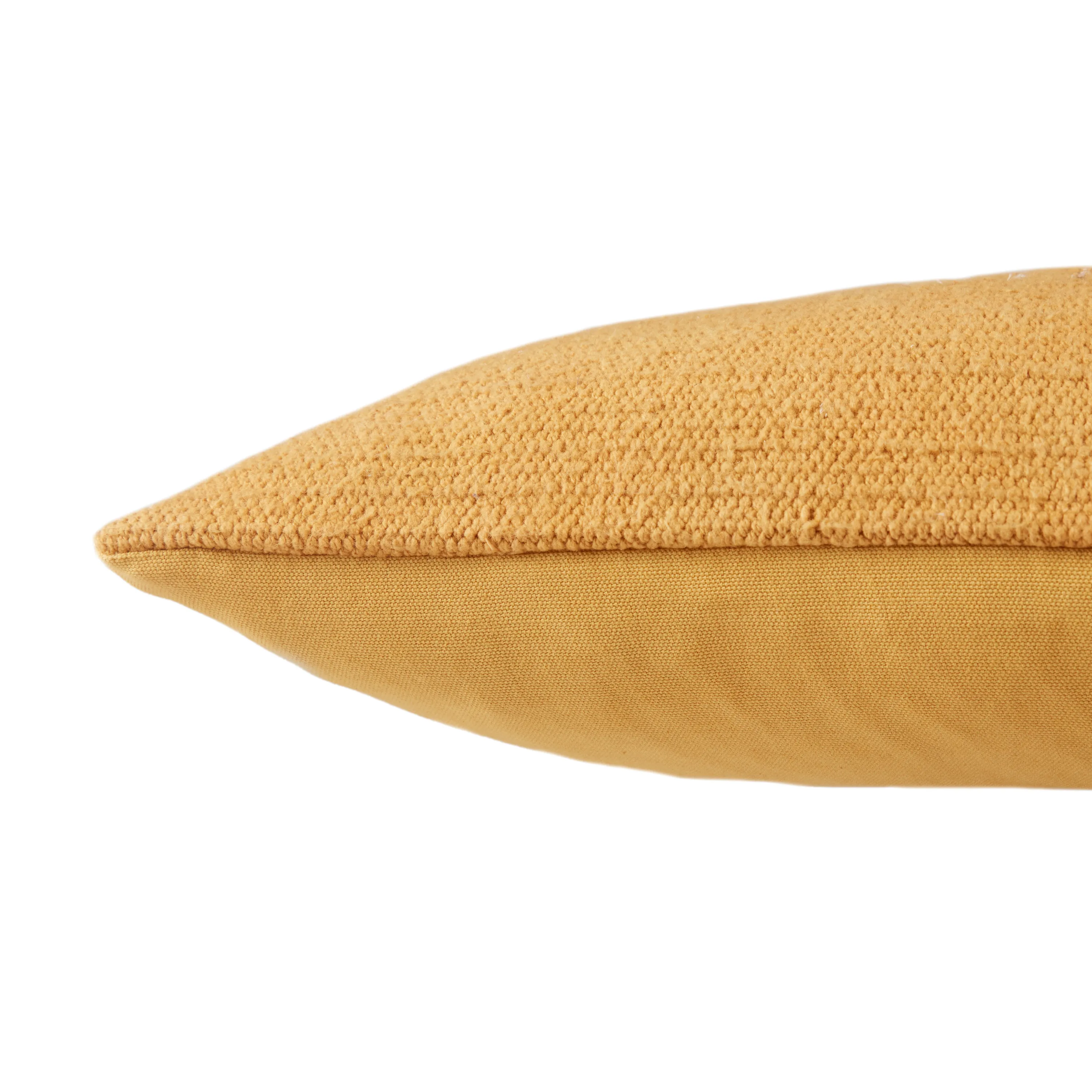 Inspired by Moroccan Sabra styles, the Puebla collection boasts vibrant color palettes and intricate tribal embroidery. The Nufisa throw pillow features an on-trend mustard yellow colorway with warm taupe and white details accenting the textural, cotton weave.