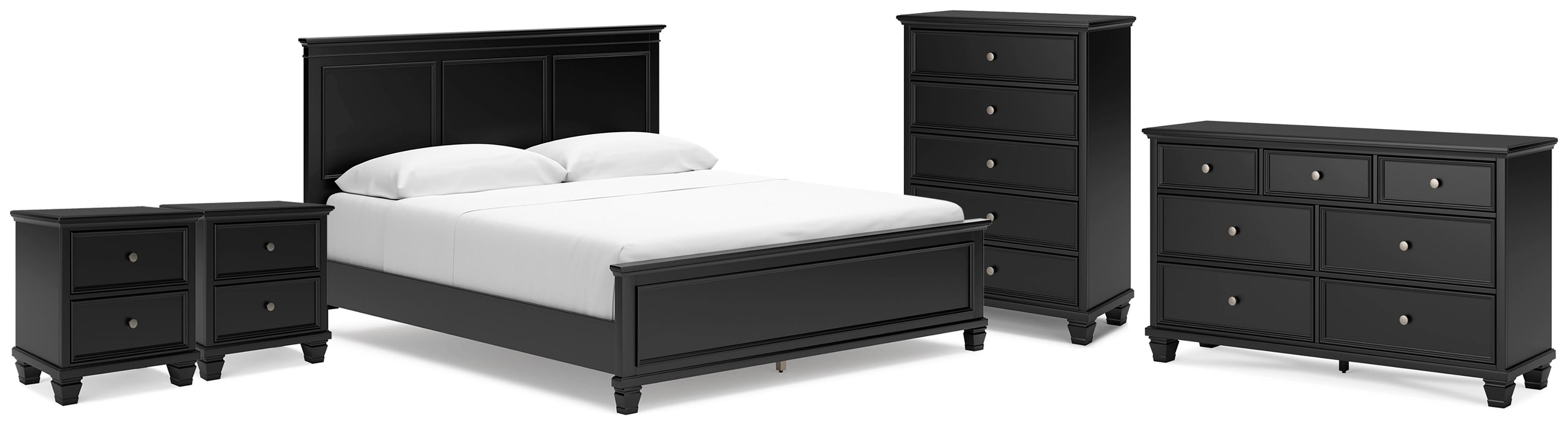 Lanolee King Panel Bed, Dresser, Mirror, Chest and 2 Nightstands