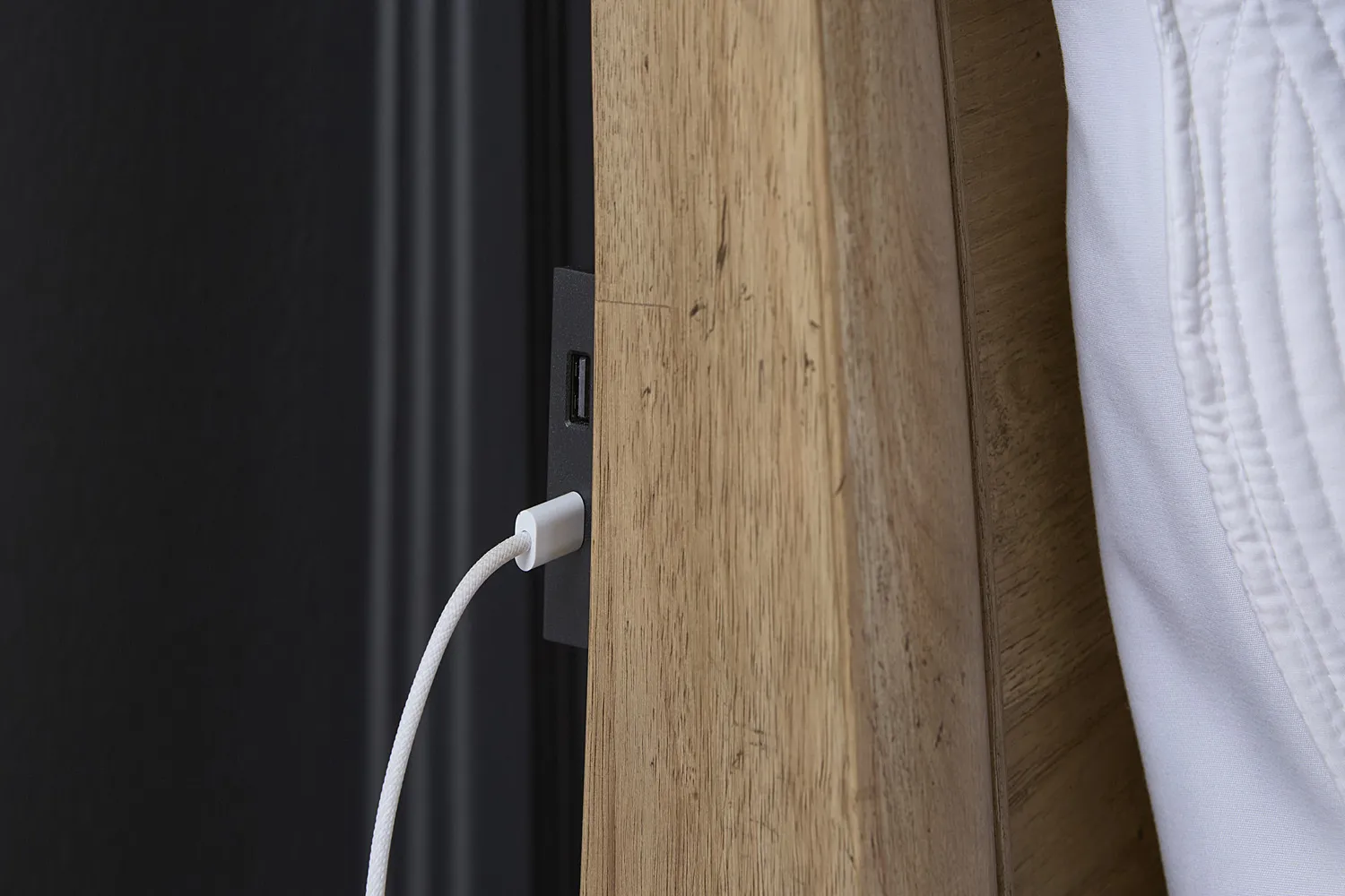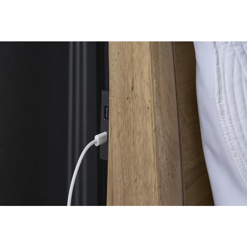 USB Headboard Charging Ports: USB ports are conveniently located on both sides of the headboard for easy reach. Keep your phone or tablet charged and ready for the busy day ahead.