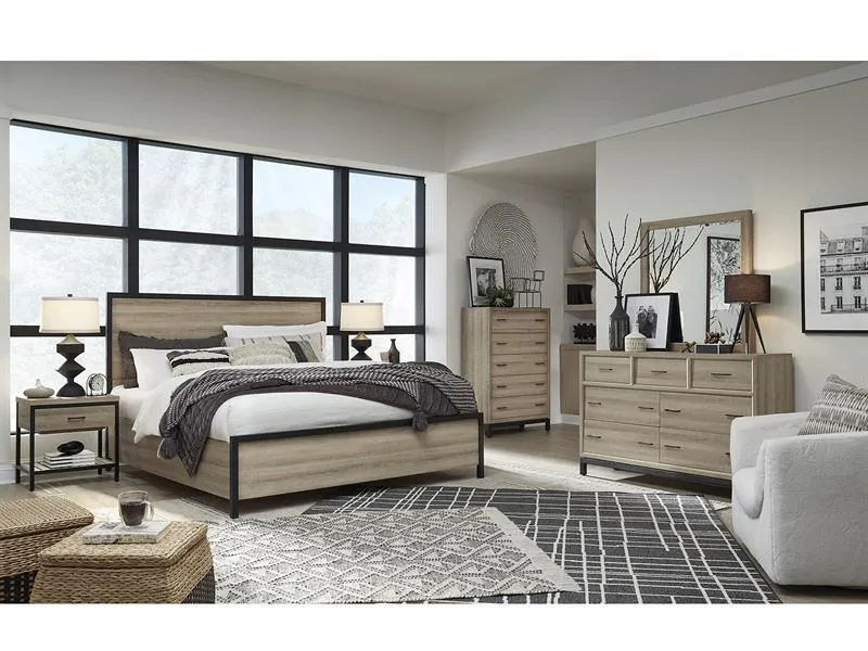 Introducing the Bastain bedroom and a bold statement in industrial design for your space. This collection embodies the raw and utilitarian charm of modern loft living with its rugged yet refined features. The Putnum Ivory and Inkwell Black finishes and paired with oak paper veneer and Inkwell Black hardware and create a striking industrial aesthetic. Perfect for spaces that embrace the industrial vibe and it adds character and depth to contemporary interiors. Crafted from durable hardwood solids and high-quality materials and the Bastain promises both style and resilience for years to come.