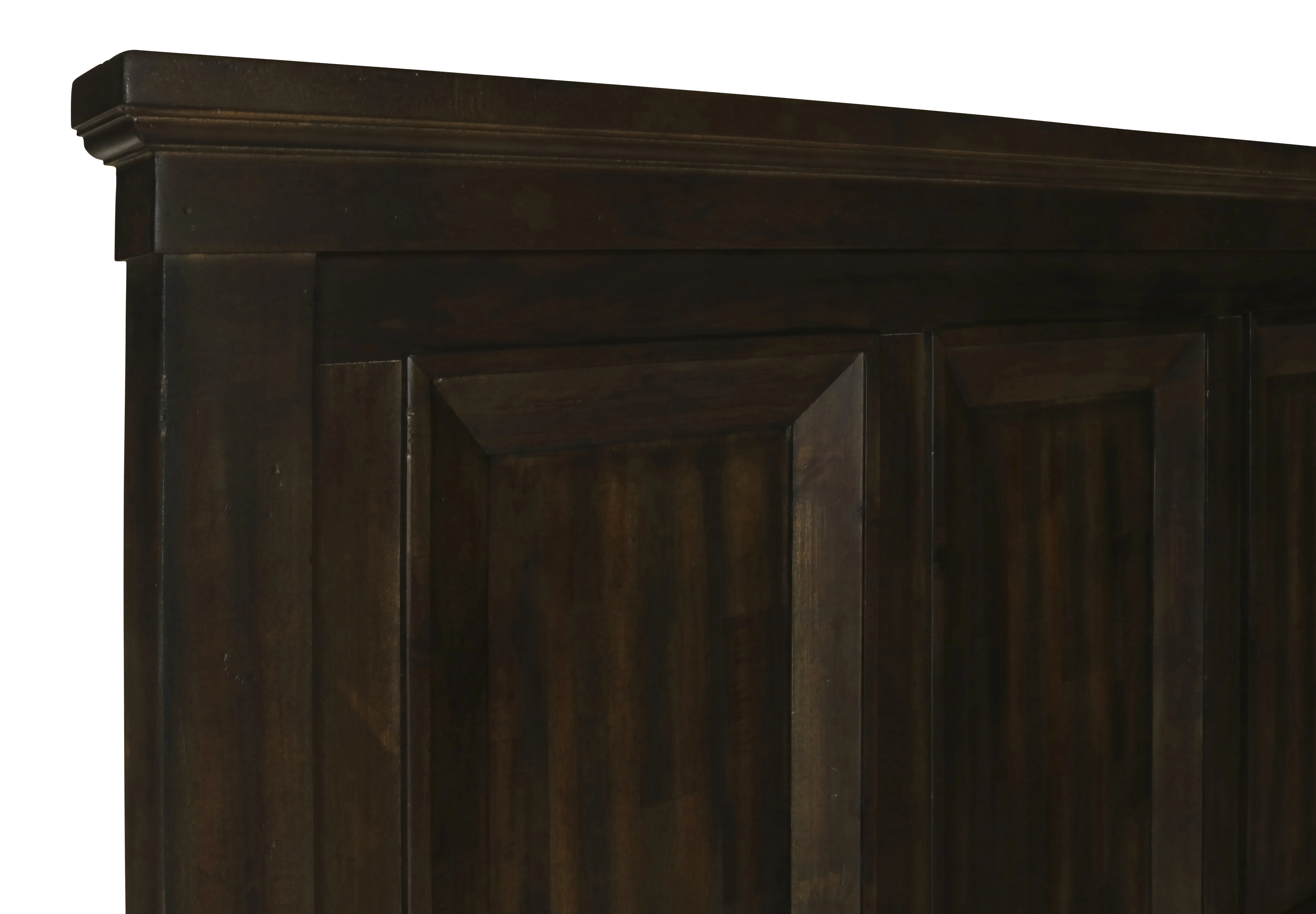The Sevilla Wood Panel Bed is a masterfully crafted piece that embodies timeless craftsmanship and sophisticated design. Constructed from solid Acacia, enhanced by manufactured wood and Acacia wood veneers, it combines durability with the rich aesthetics of premium woodwork. The artisanal multi-step finish in walnut, featuring hand-distressed details like rasping and indentations, delivers an authentic vintage appeal that adds warmth and character to any bedroom. With its versatile design that blends traditional elegance, rustic charm, and colonial craftsmanship, this bed serves as a captivating focal point, making it ideal for classic, cozy, or historically inspired spaces. Its majestic features, including thick crown moldings, wide picture frame panels, and plank-style insets, ensure it not only commands attention but also offers a sturdy, reliable sleep environment. This is the perfect choice for those seeking a blend of beauty, durability, and a piece that truly stands the test of time.