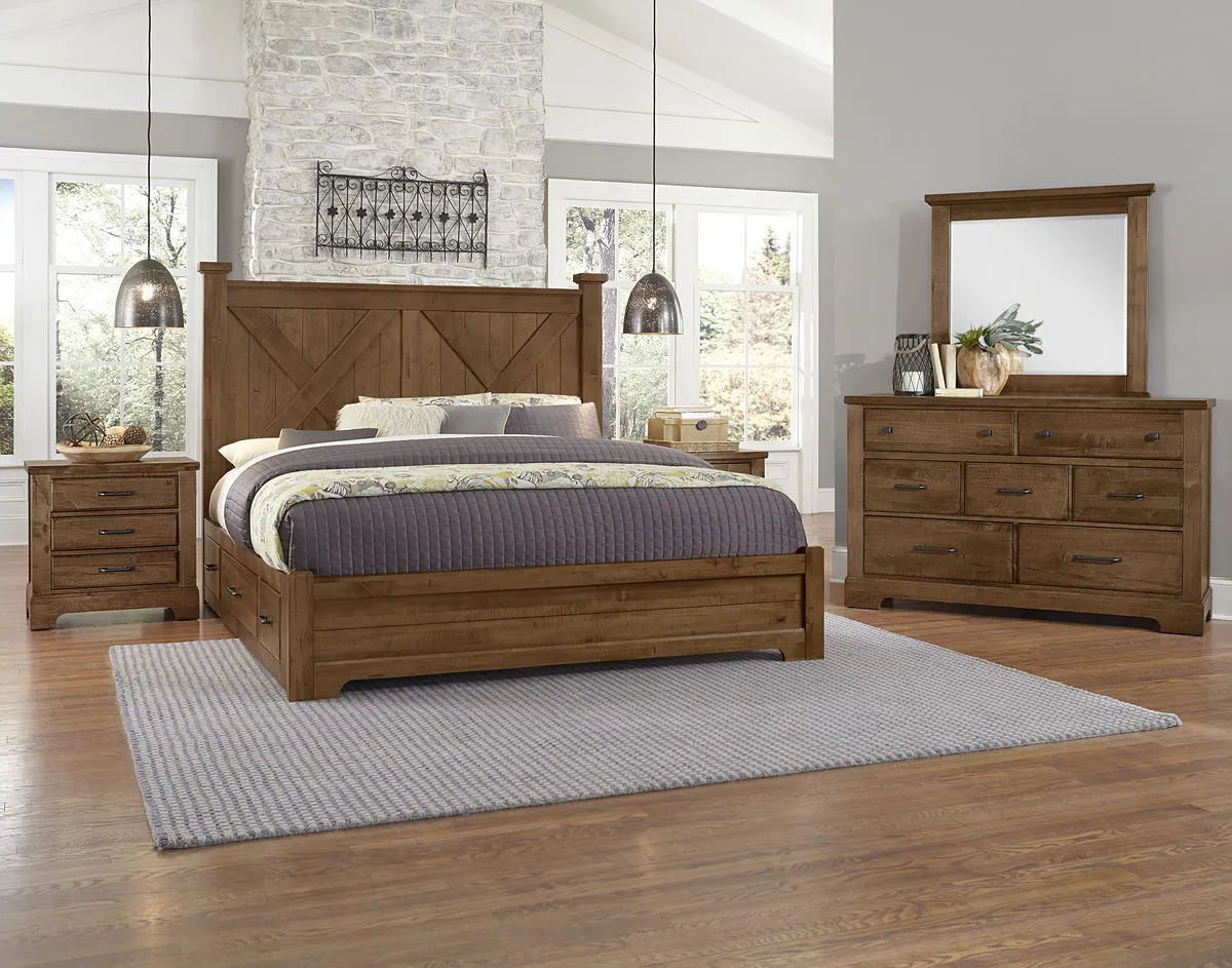 Cool Rustic Queen X Bed w/2 Sided Storage -Amber by Vaughan Bassett