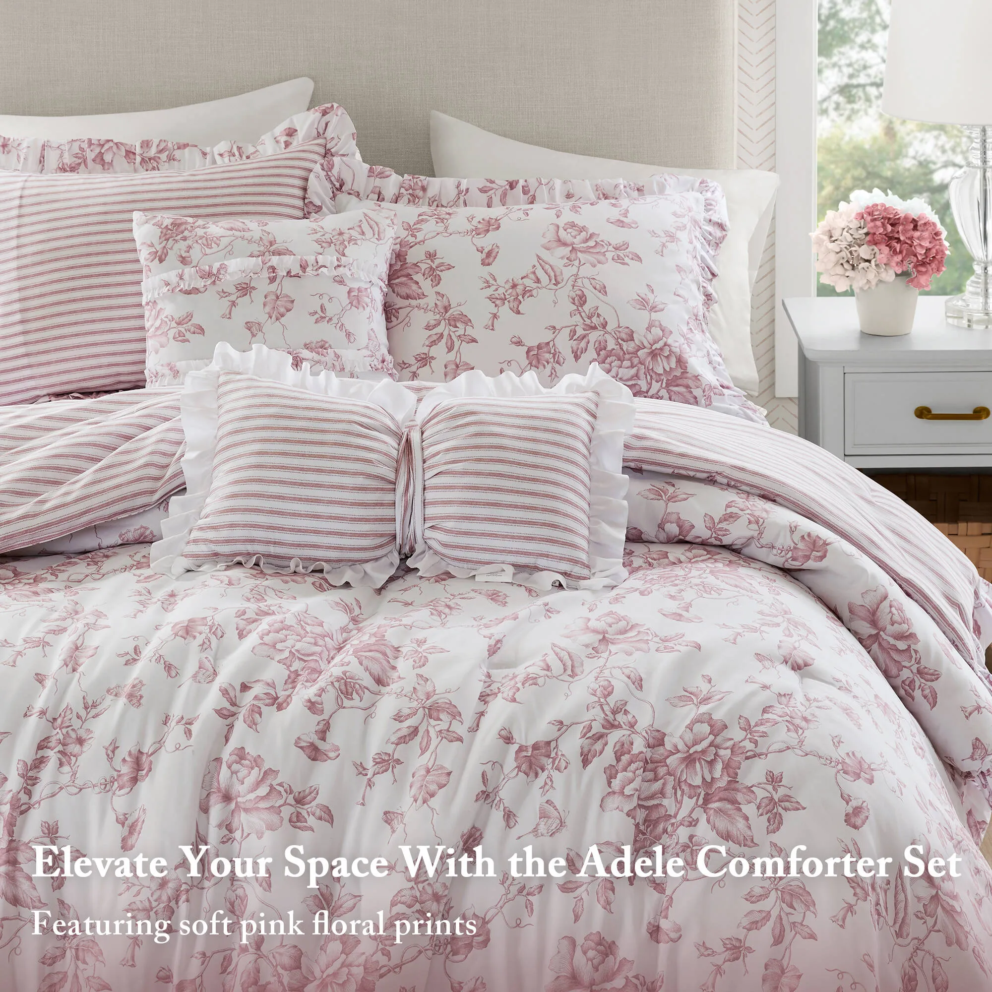 Transform your bedroom into a dreamy retreat with our vintage coquette bedding set. Soft hues of light blue and pink create a romantic, shabby chic atmosphere, while the charming ruffle edges add a touch of elegance. The reversible design offers a chic stripe alternative, perfect for refreshing your decor. Crafted from soft microfiber with durable dash stitching, this set is designed for long-lasting using. It is also OEKO-TEX certified and machine washable for easy care, ensuring safety and convenience for your family. It’s the perfect gift for daughters, granddaughters, or anyone seeking affordable comfort and style.