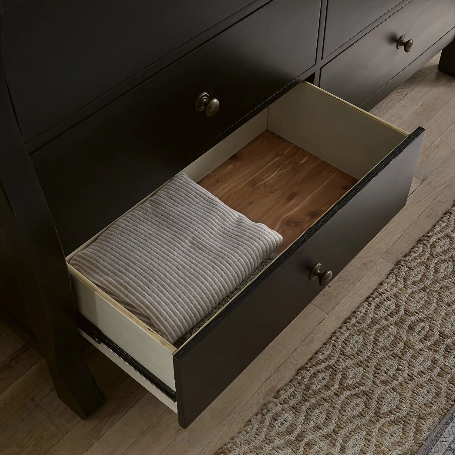 Cedar Lined Bottom Drawers: Known for its pleasant aroma, cedar absorbs unwanted odors and wards off moths, making it a perfect material to store seasonal linens and clothing!