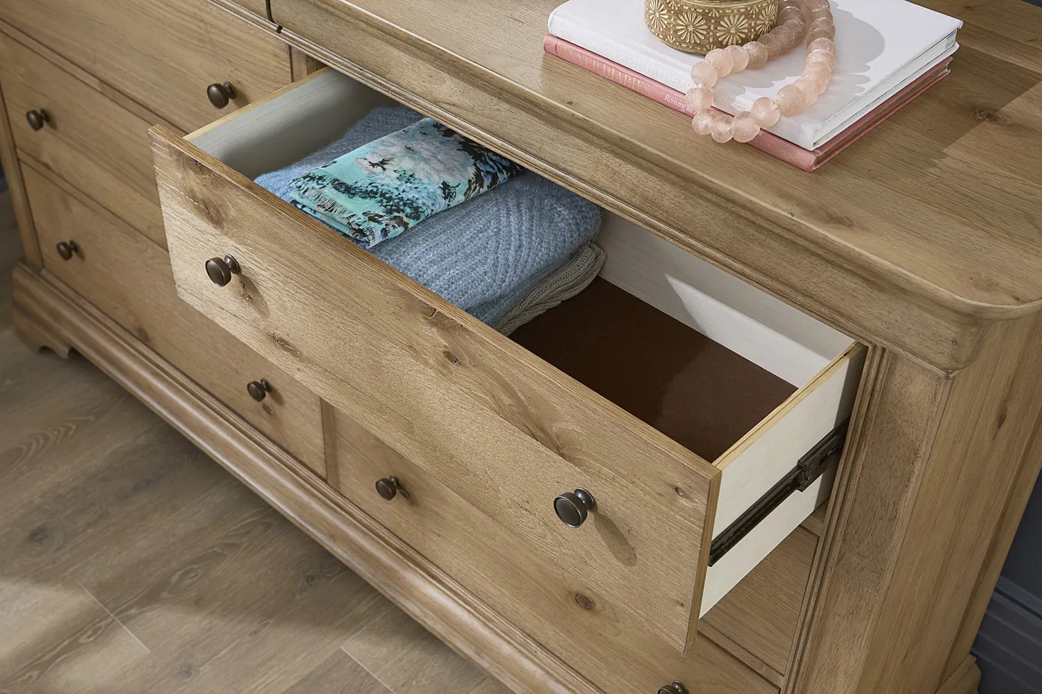 Cedar Lined Bottom Drawers: Known for its pleasant aroma, cedar absorbs unwanted odors and wards off moths, making it a perfect material to store seasonal linens and clothing!