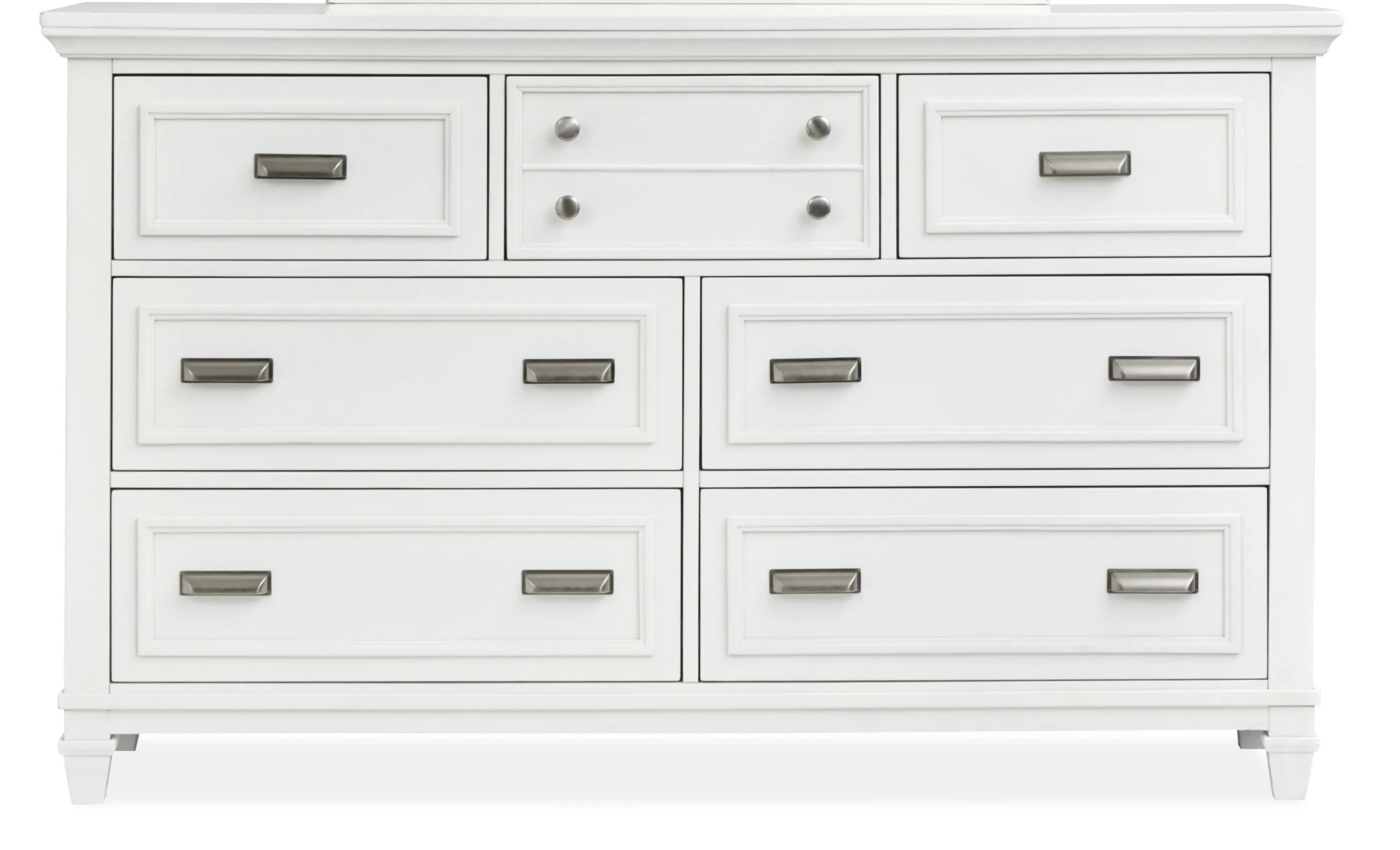 Charming in every way, the Charleston bedroom collection provides the foundation for a dreamy bedroom. With clean shapes and crisp lines, its fresh transitional aesthetic can be styled to complement cottage, coastal or modern farmhouse decor. A louvered design adds classic character and visual appeal to the panel headboard and door panels. Fresh finishes in White Dove and Harbor Gray, accented with Brushed Pewter hardware, establish these bedroom furnishings as design essentials. With style and functionality that speaks to the heart of a well-designed space, Charleston is the perfect choice for swoon-worthy guest rooms and master bedroom retreats.