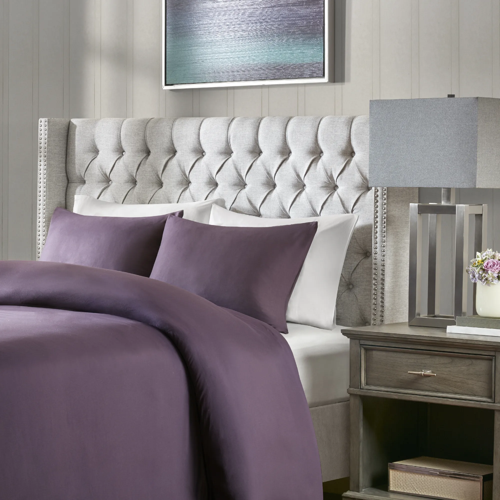 Elevate your bedroom with the Madison Park Amelia Upholstered Headboard, a statement piece designed for timeless sophistication. Featuring a classic wingback silhouette, hand-tufted plush button detailing, and a double row of individually applied nailhead trim, this headboard exudes elegance. Upholstered in soft, durable fabric with foam padding for extra comfort, it provides a cozy backdrop for reading or relaxing. Ideal for modern, transitional, and classic decor styles, Amelia transforms any space. Upgrade your bedroom today!