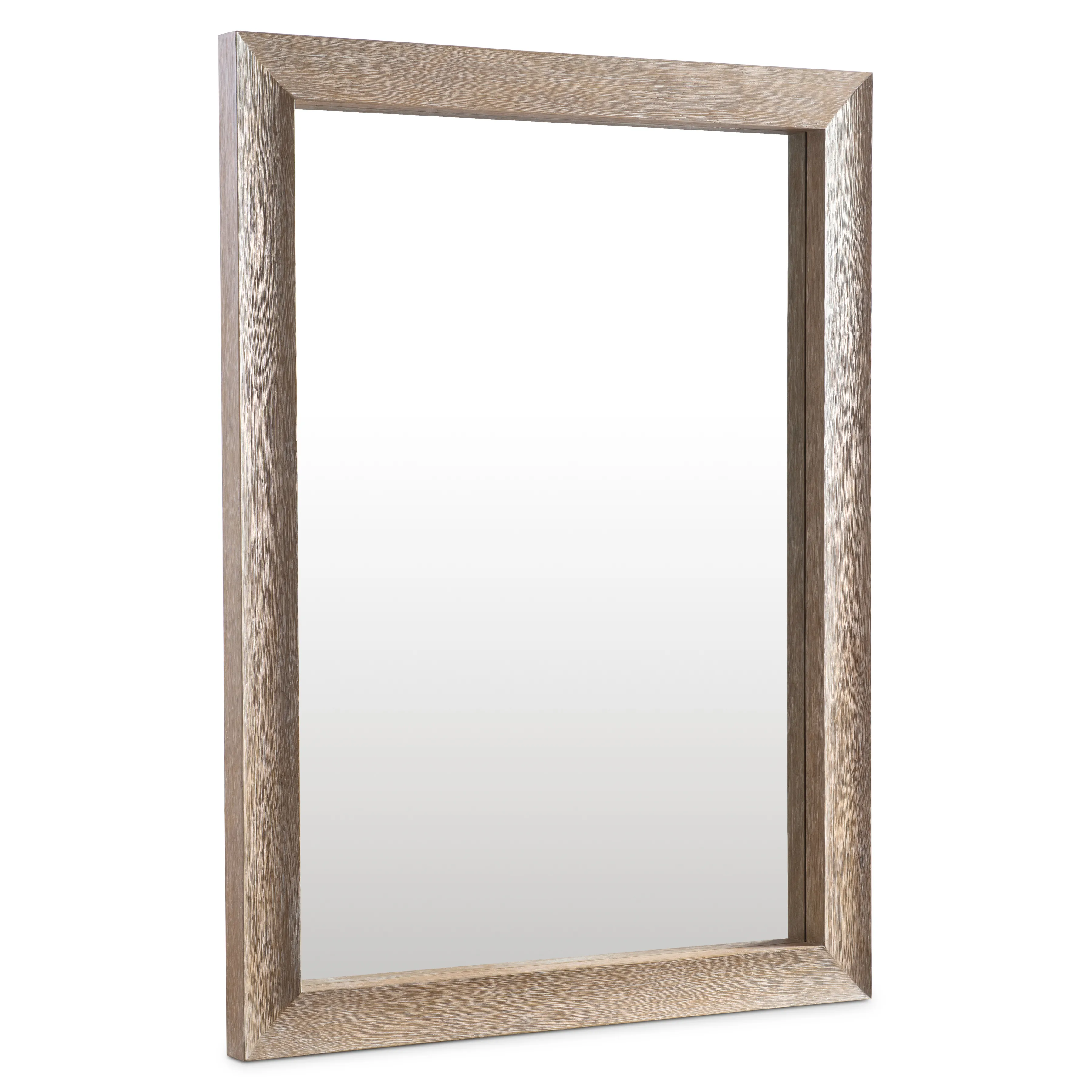 The Loggia mirror takes sleek lines and gives them a modern rustic style in textured wood. The frame curves gently towards the glass while the textured wood is finished in Aria.