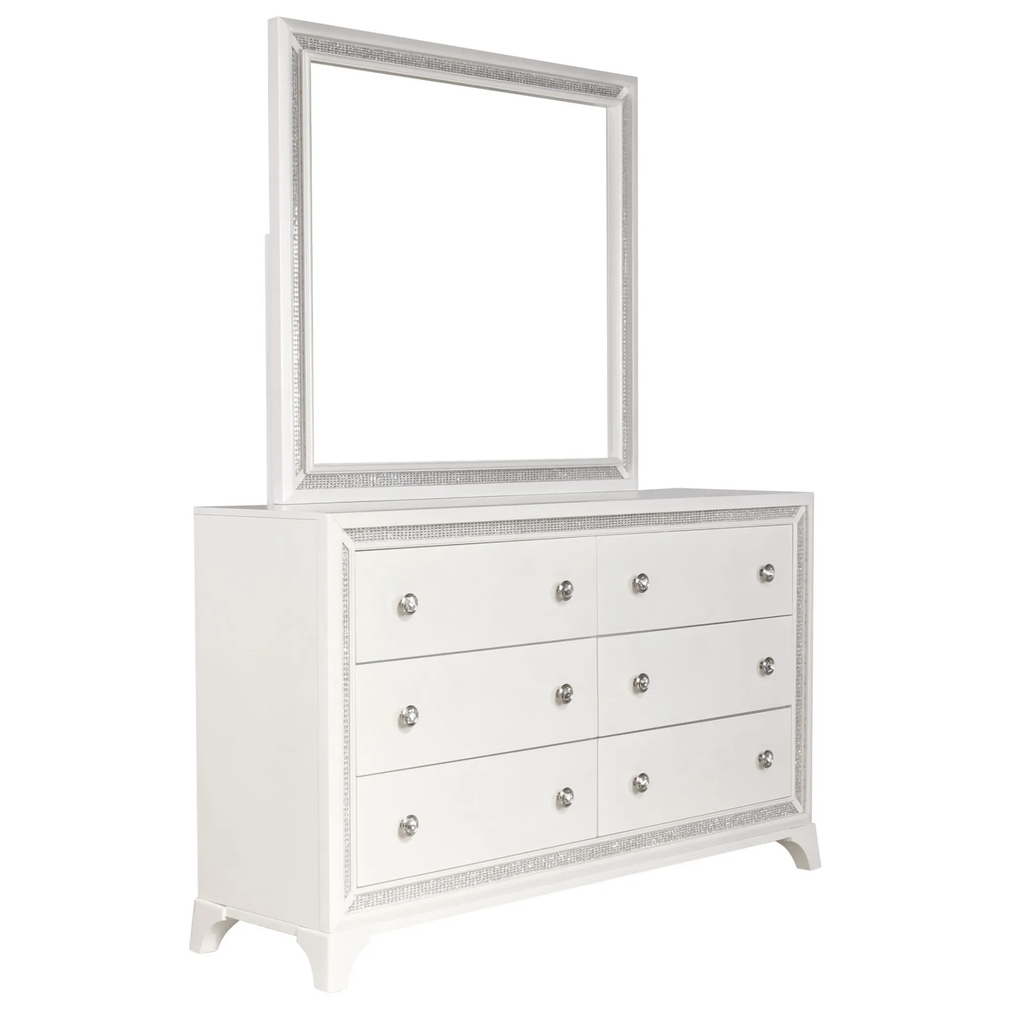 - The Dresser and Mirror are bathed in a shimmering pearl finish, creating a stunning accent that elevates the beauty of any room