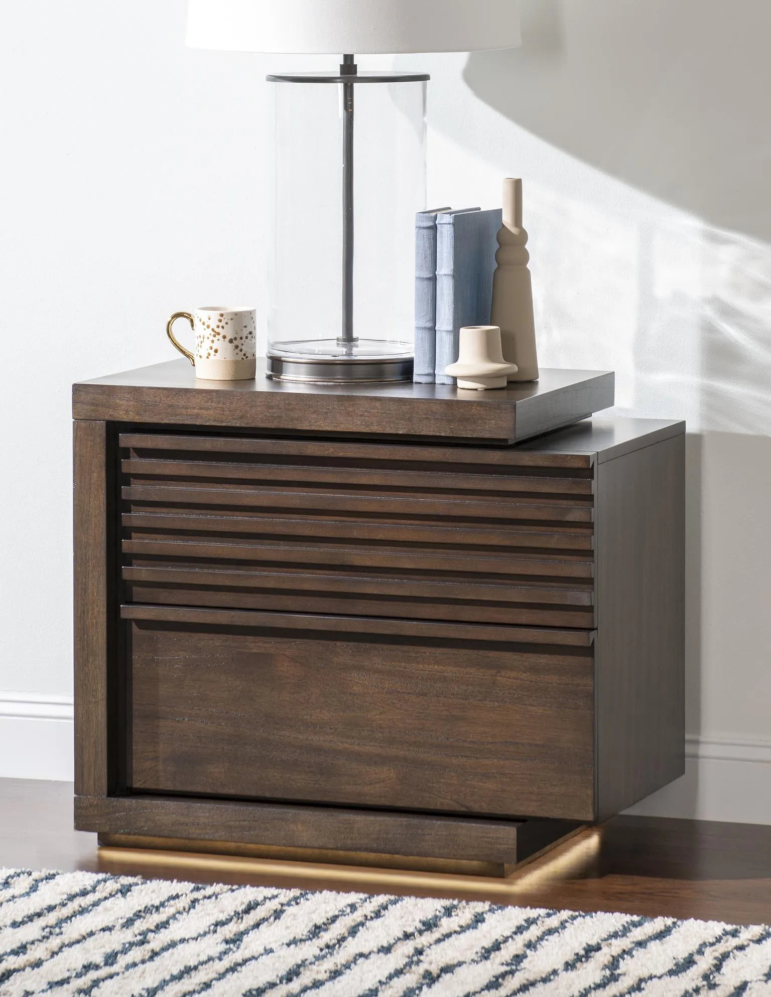 Nightstand (2 Drawers, Led Lights, Power W. 2 Outlets, 1 USB + 1 USB-C, Reversible)