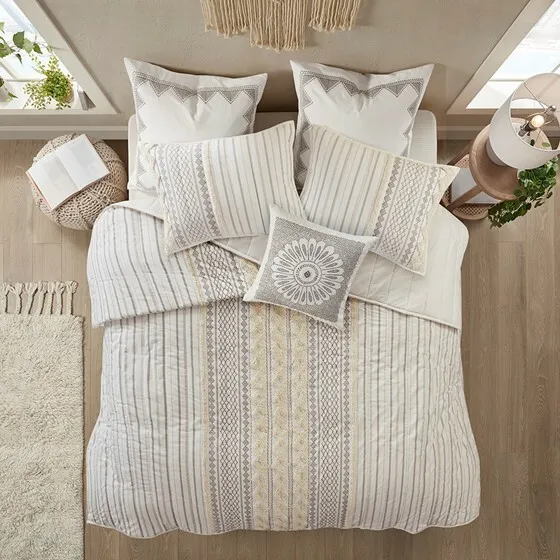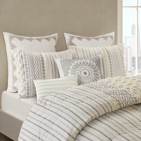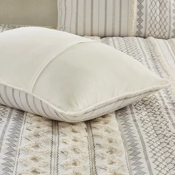 Bring a soft, mid-century look to your bedroom with the INK+IVY Imani Cotton Coverlet Mini Set. The ivory cotton coverlet features geometric prints with tufted chenille that adds dimension and charm to the bedding set. Hidden bartacks give the coverlet a duvet-like finish, while the solid ivory reverse complements the eye-catching patterns seen on top of the bed. Two cotton shams reiterate the designs of the coverlet, creating a stunning coordinated look. This coverlet is also OEKO-TEX certified, meaning it does not contain any harmful substances or chemicals, ensuring quality comfort and wellness. Made from 100% cotton, this coverlet mini set is machine washable and offers a refreshingly soft update to your bedroom décor.