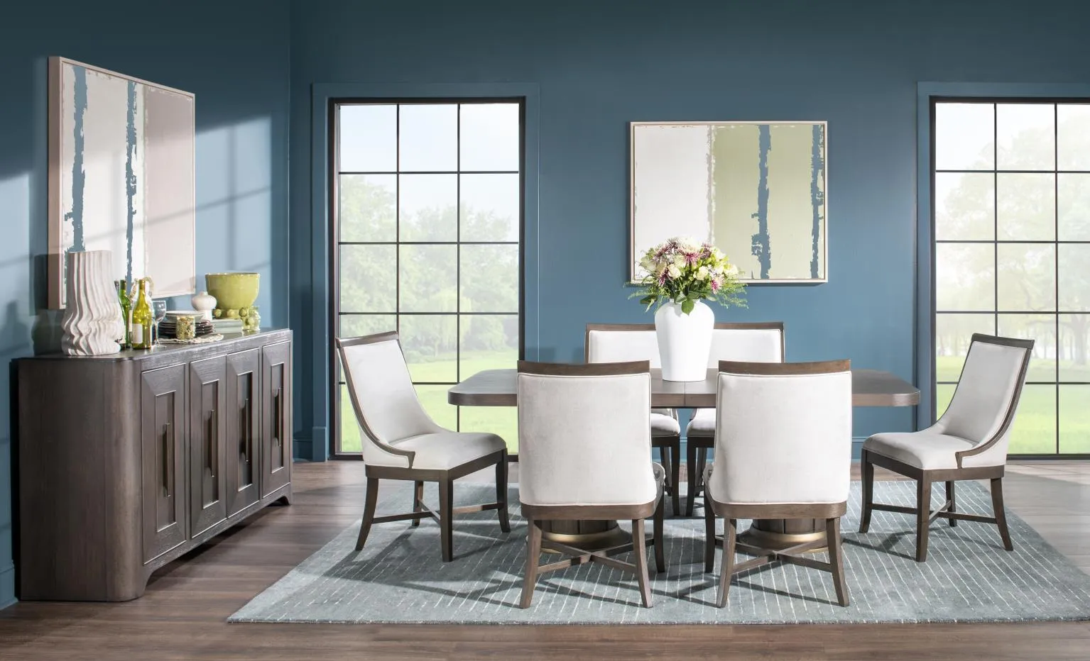 Lancia is the perfect blend of traditional charm and modern sophistication. This collection features a rich Charred Oak finish, crafted from Select Hardwood Solids and Oak veneers. The Hammered Gold Hardware adds a touch of luxury. Framed drawer fronts add dimension and depth while rounded pilasters soften the look. Stone tops are offered on select pieces for added durability and style.