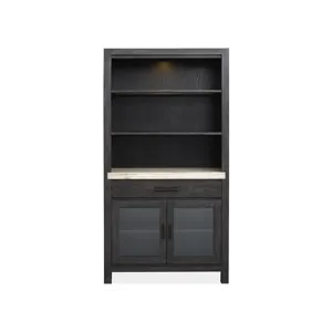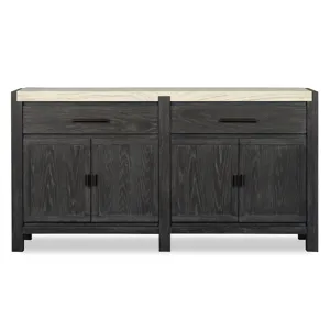 The Plum Creek Collection brings a serene and seasonless style to your dining room and combining natural beauty with subtle sophistication. Finished in a soft Raenwood Black and complemented by Oil Rubbed Bronze hardware and the collection blends Random Cathedral and Slip/Flip White Oak Veneer and hardwood solids and stone and and fabric for a warm and inviting look. The feature smooth lines and gentle curves and while the notched stone detailing adds an element of texture and interest. The Plum Creek Collection brings timeless charm to any home and offering a perfect balance of understated elegance and effortless warmth.