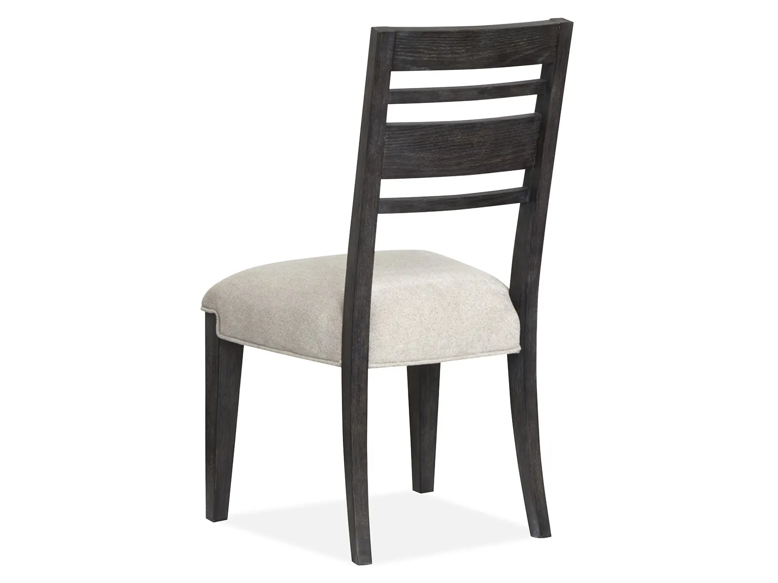 The Plum Creek Collection brings a serene and seasonless style to your dining room and combining natural beauty with subtle sophistication. Finished in a soft Raenwood Black and complemented by Oil Rubbed Bronze hardware and the collection blends Random Cathedral and Slip/Flip White Oak Veneer and hardwood solids and stone and and fabric for a warm and inviting look. The feature smooth lines and gentle curves and while the notched stone detailing adds an element of texture and interest. The Plum Creek Collection brings timeless charm to any home and offering a perfect balance of understated elegance and effortless warmth.