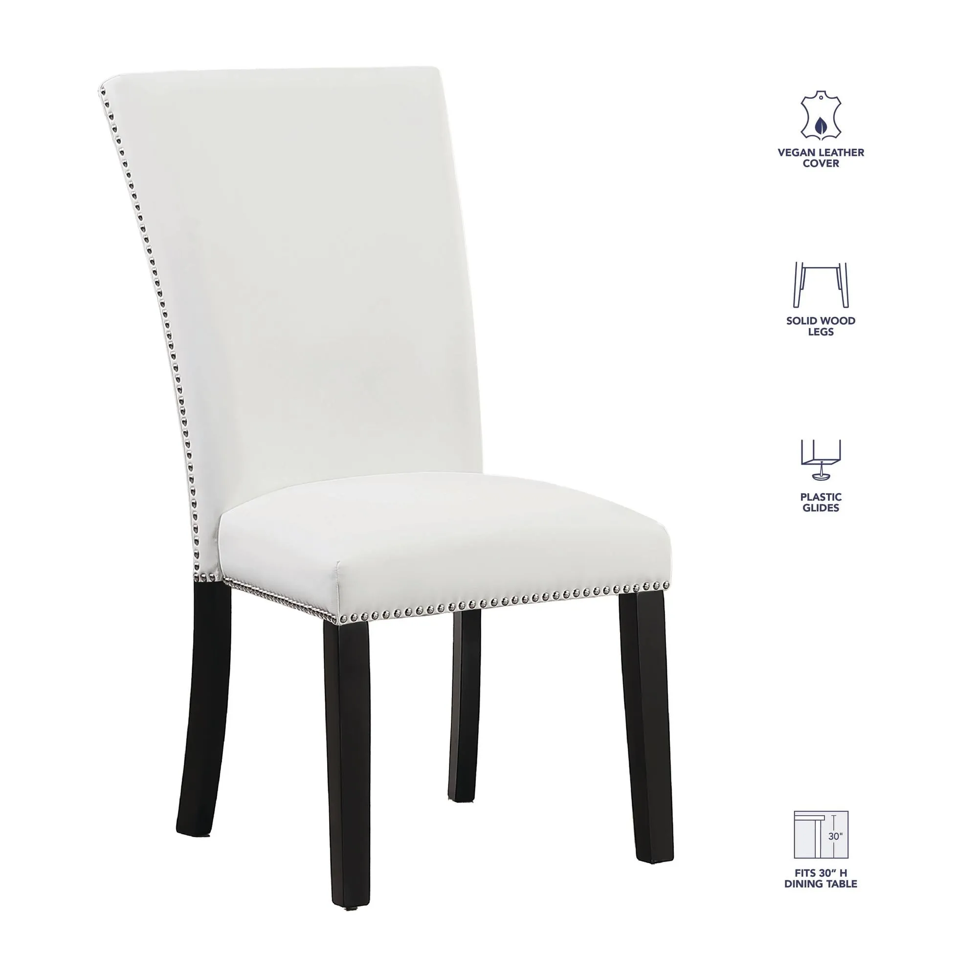 The Artemis White Vegan Leather Side Chair with Black Legs delivers plush comfort with an incredibly soft, luxurious hand. Its neutral white vegan leather beautifully complements the black-finished frame for an elevated, inviting look. Designed for both style and versatility, it works beautifully with the Artemis Dining Table or in a variety of settings, including as a guest or office chair. Solid construction ensures lasting durability, while the gently pitched back offers supportive comfort, allowing you to sit, relax, and enjoy every moment.